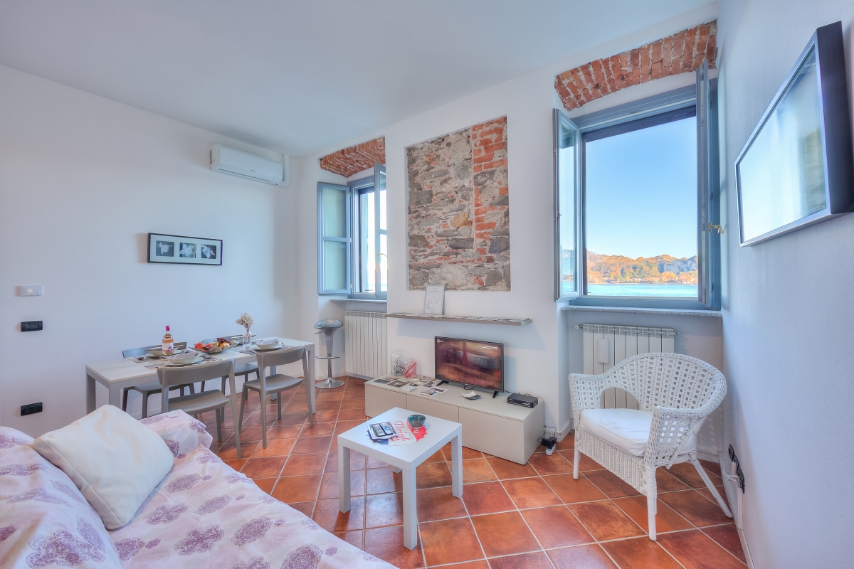 Enjoy the enchanting Lake Maggiore with this modern duplex apartment, on the second floor of a historic building. The residence is known as Dimora dell'Antico Porto and is right by Lake Maggiore in the Piazza del Popolo, the oldest square in Arona. The location could not be prettier, it is next to the 14th century harbour and opposite a charming church which dates from 1592. The building's 16th century arches and wrought iron balconies bear the arms of the Borromeo family, which adds to one's sense of history.