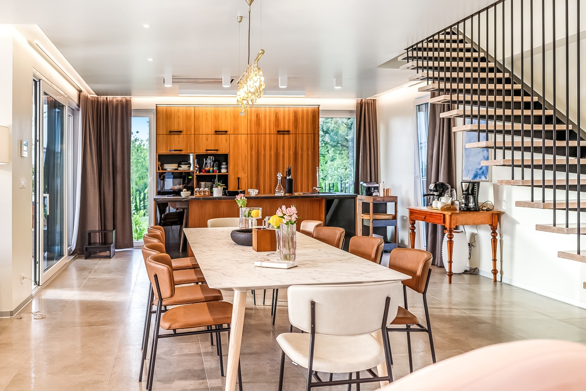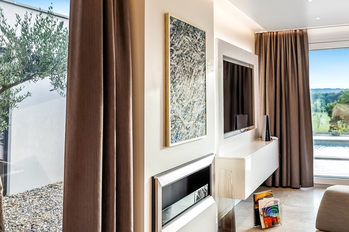 Designed for alfresco living there is also a summer-covered kitchen with a large dining table, a barbecue, an outdoor chess set and a small vegetable garden. For complete privacy, the roof terrace enjoys uninterrupted views of the surrounding olive trees, lavender and nearby vineyards.