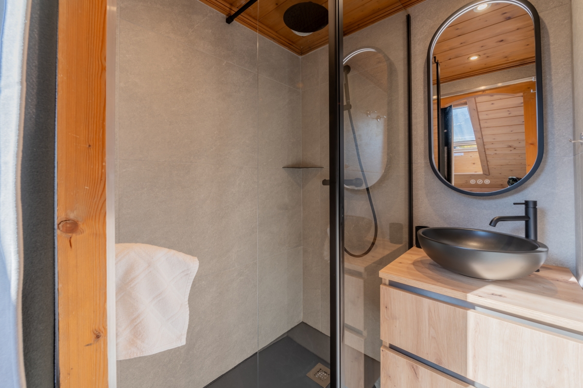 Bathroom 2: En suite to the master bedroom, this bathroom has a glass shower and a basin.