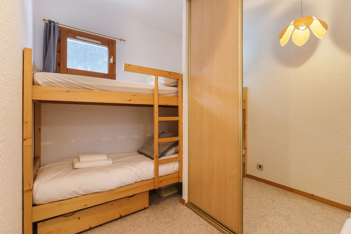 Bedroom 2: A cosy bedroom with bunk beds and a wardrobe.