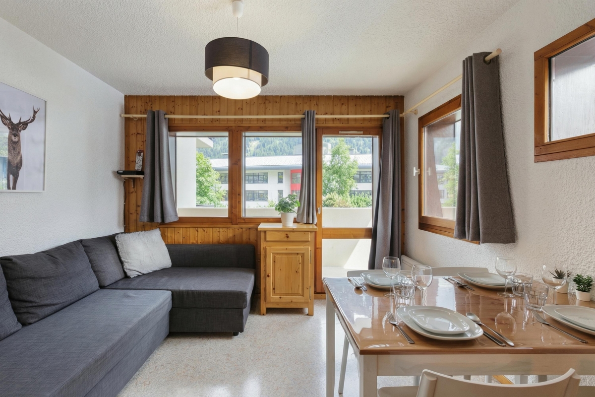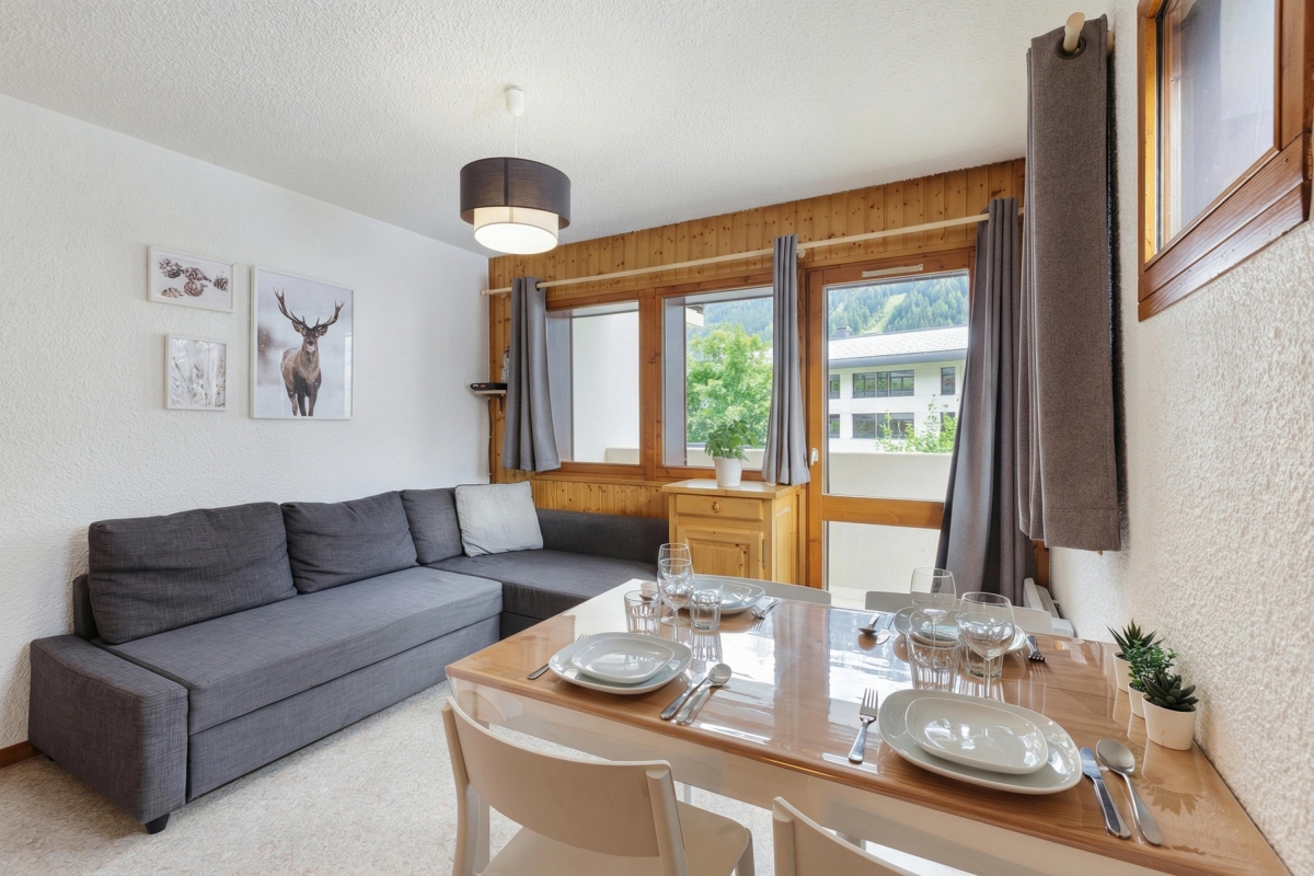 With all resort amenities and Teleskis du Savoy at a stone’s throw away, this modern, 2-bedroom apartment sets the perfect scene for a carefree ski vacation for up to 4 guests. The first-floor apartment is child-friendly and offers a private balcony with open-air seating accompanied by beautiful Mont Blanc views perfect to unwind in privacy. Inside, the open living room is well-illumined with natural light, thanks to the apartment's big glass windows and doors. This room is further furnished with a large sofa, a dining for 4 and a well-equipped kitchenette for all your self-catering needs. A microwave, fridge with freezer, toaster, raclette and fondue are available for guests’ use.
