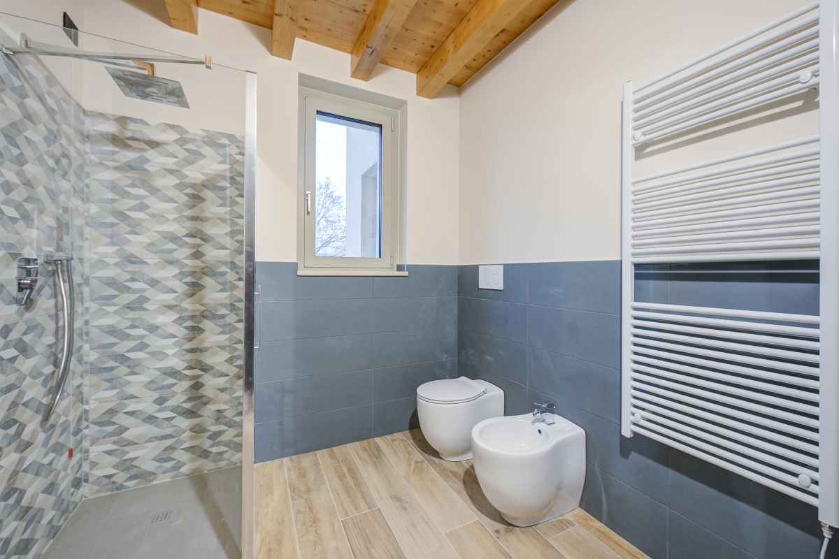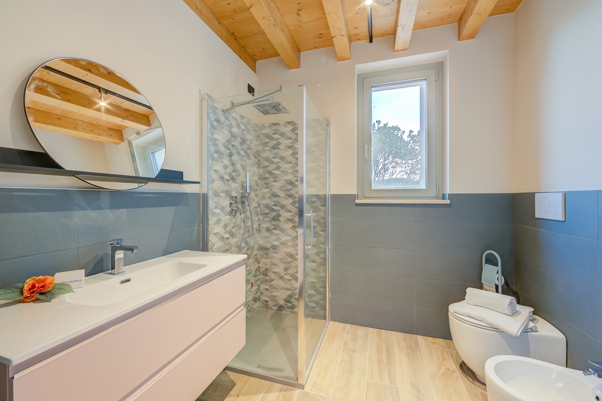 Bathroom: The modern bathroom is fitted with a walk-in shower, bidet, washbasin and WC