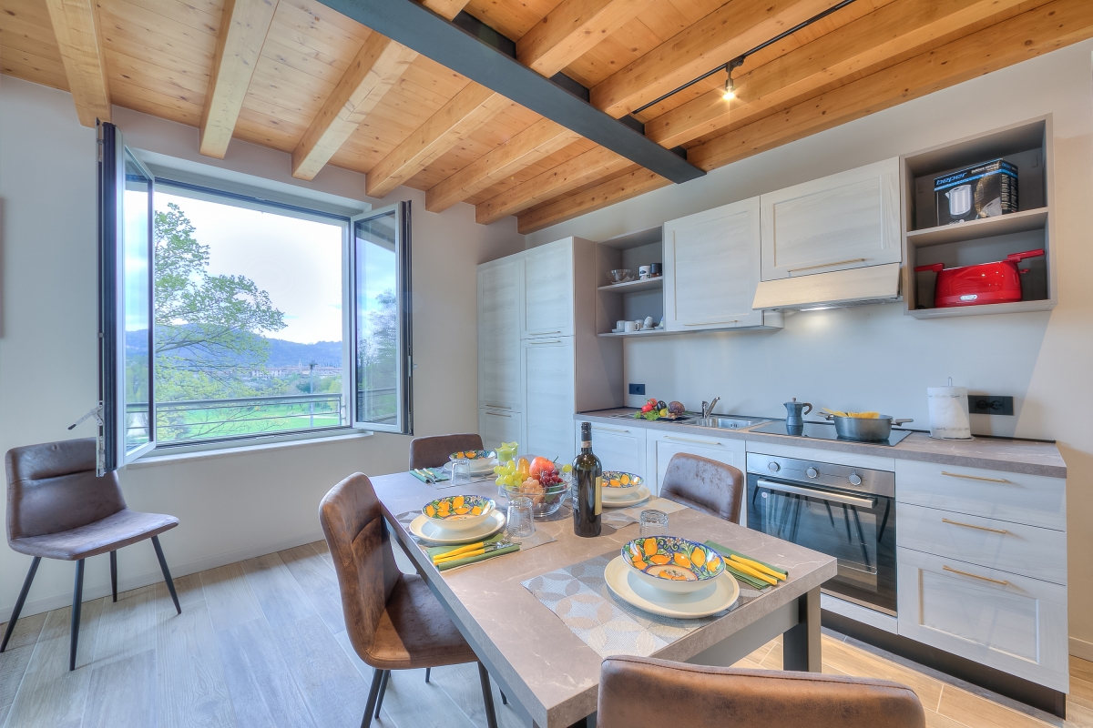 This beautifully airy, modern apartment is ideally located within one of Lombardy’s most important natural parks, just a 7-minute drive from the Western shores of Lake Garda. Situated on the first floor the property comfortably sleeps four guests and enjoys the most fantastic views of the surrounding hills from its large picture windows and balcony.