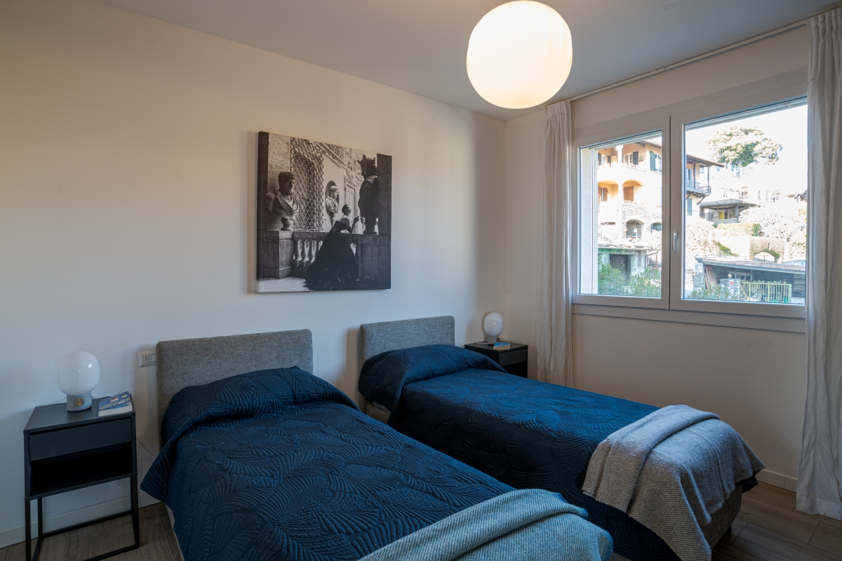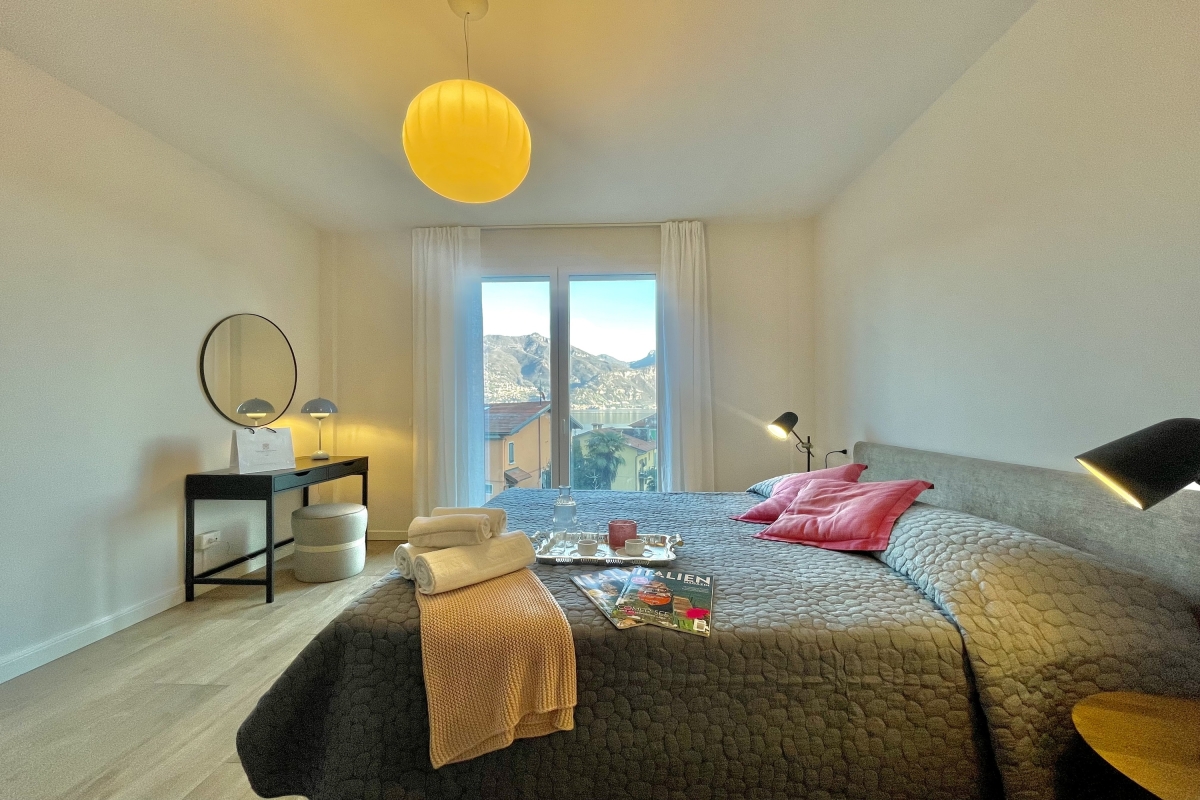 This tranquil, sunny 2-bedroom apartment is conveniently situated close to the Menaggio lakeside and can easily house up to 6 guests. With its large, sunny balcony with semi-lake-view dining, the second-floor apartment (with a lift) welcomes visitors to unwind in a lovely holiday atmosphere. The visitors also have access to a big shared outdoor swimming pool where they can relax on sun loungers at their leisure.