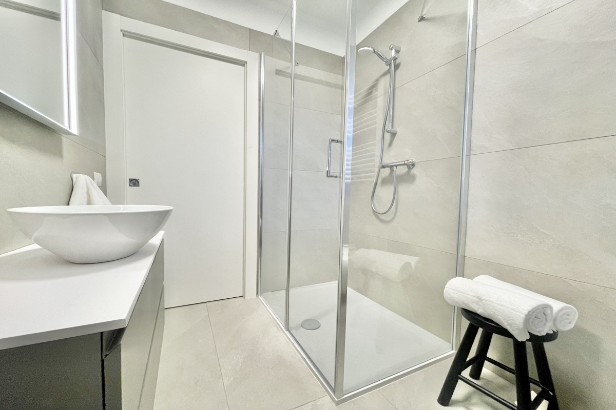 The apartment has 2 stylish and ambient modern bedrooms; one with a double bed and the other with 2 single joinable beds. Both bedrooms have en-suite bathrooms and a wardrobe. There is also a sofa double bed in the living room to sleep 1-2 guests.