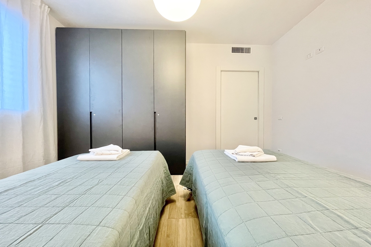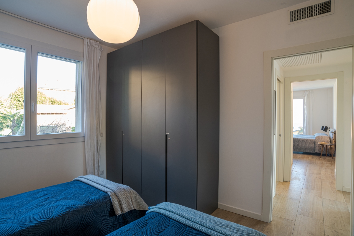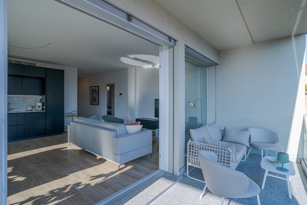 Within, there is a comfortable and spacious living room with modern amenities like Wi-Fi and a Smart TV and direct access to the private balcony. This airy refuge is ideal for summers, with large picture windows and beautiful views of the surroundings from every angle. The apartment's kitchen is sleek and furnished with all the amenities needed for a relaxing trip, including a dishwasher, microwave, oven, coffee maker, induction hob and toaster.