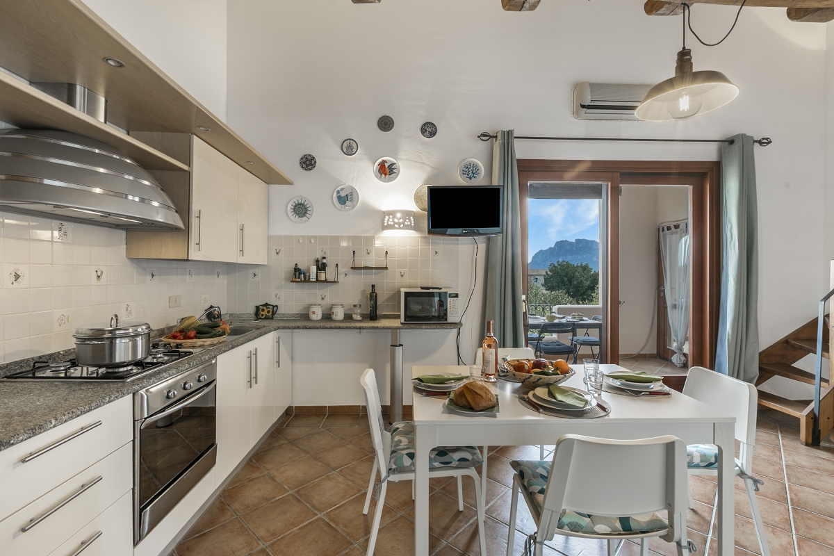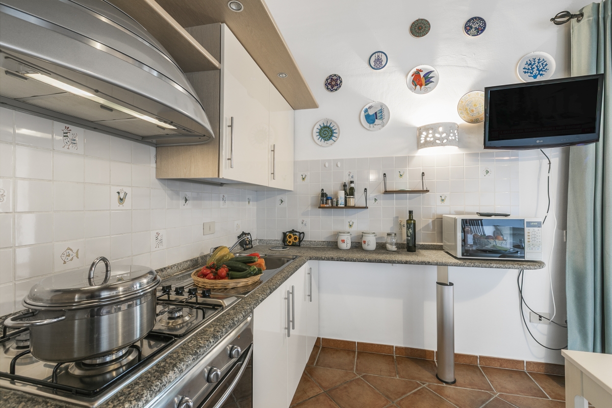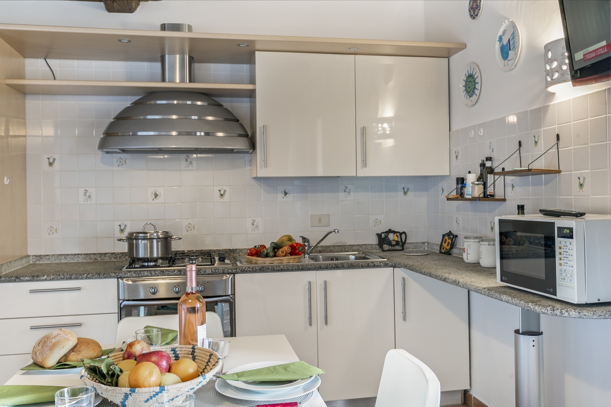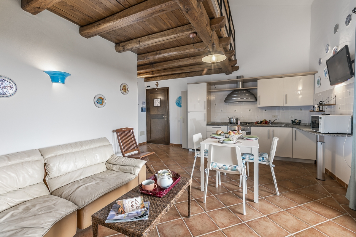 The apartment, located in the Residence Il Borgo, has all the features to allow a comfortable and relaxing stay. Located on the first floor it has a covered terrace with sea view and table and chairs and inside it consists on the entrance floor of a living room with open kitchen, a double bedroom with double bed and a bathroom, in the loft open to the living room a bedroom with two single beds and a bathroom.