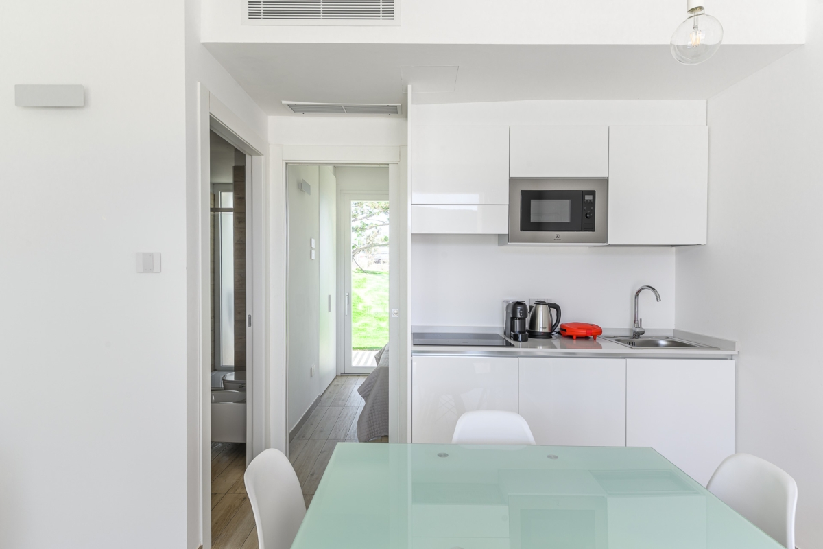 The Bilocale Premium is a 38sqm apartment with living room with kitchenette, refrigerator, dishwasher, double sofa bed, double bedroom and bathroom.