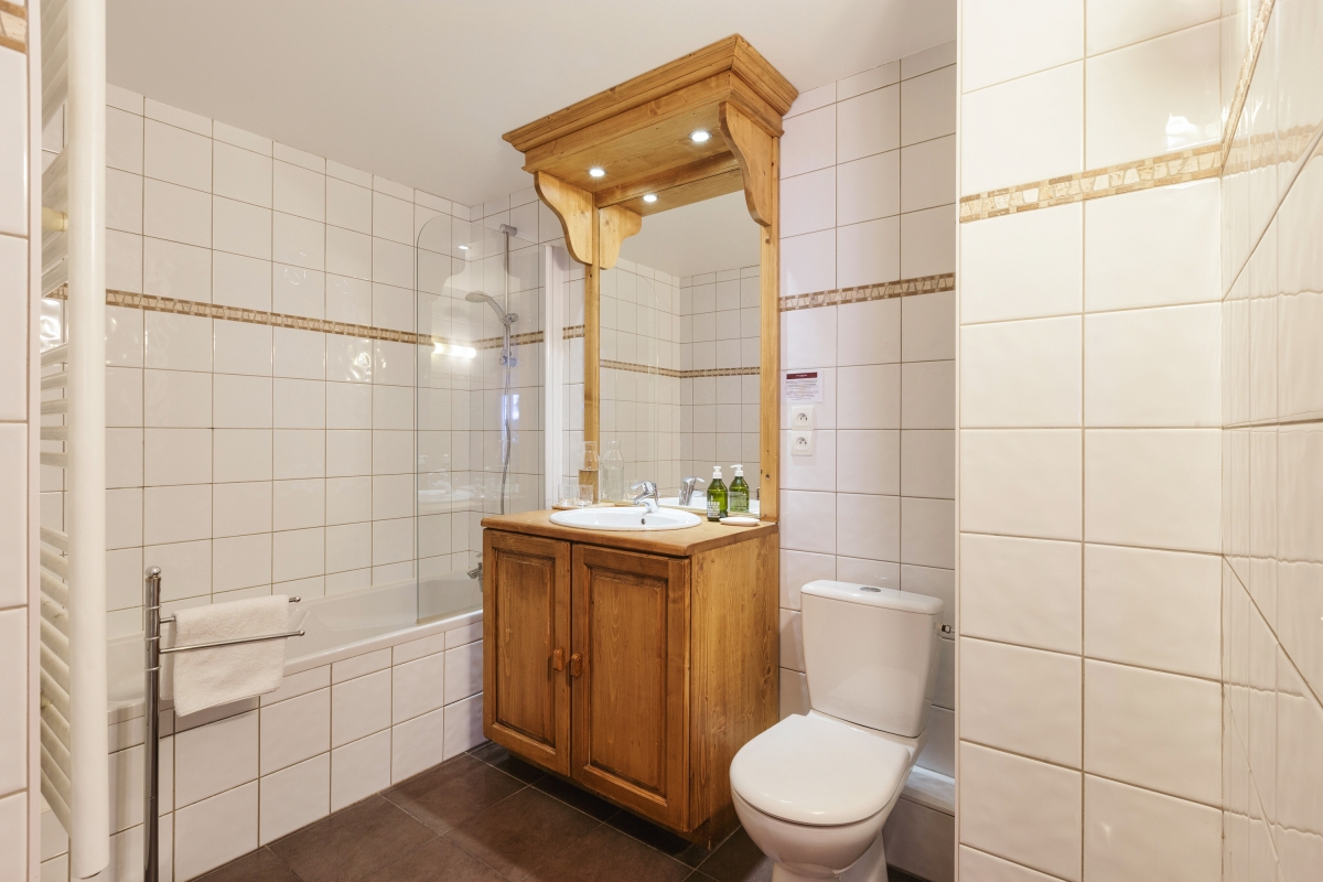There are 2 bathrooms in the apartment, both have a bath with a shower, basin and W.C.