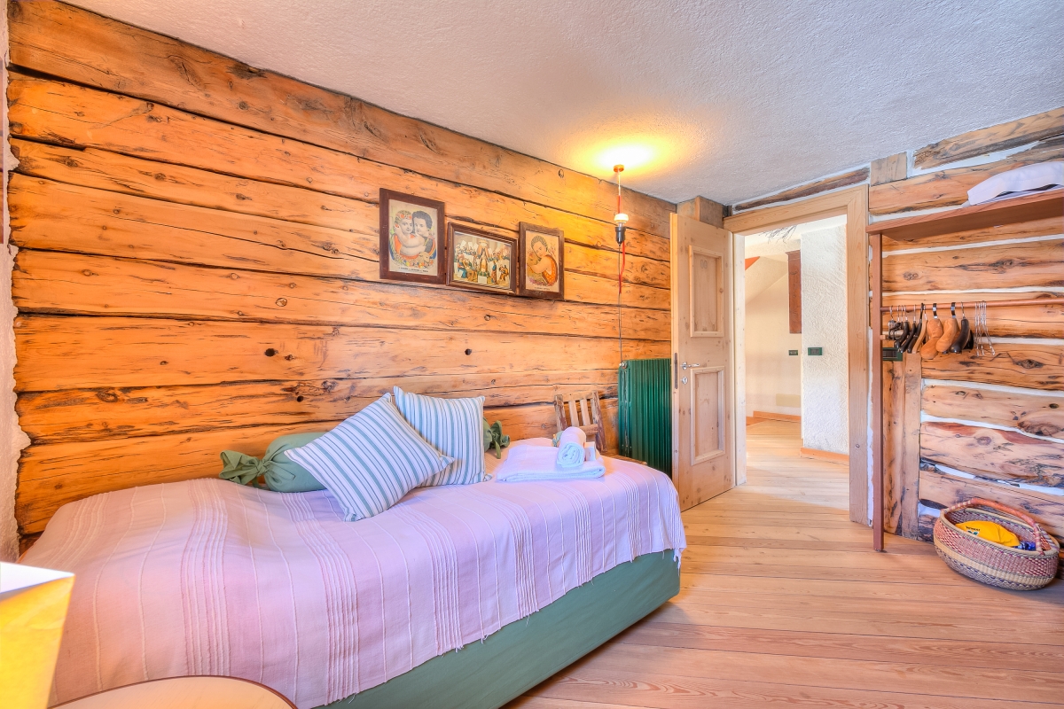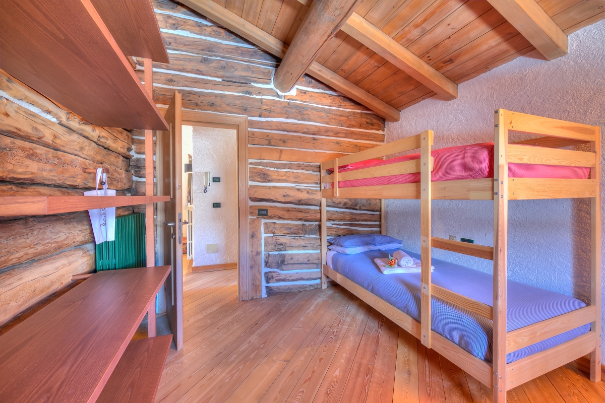 Bedroom 4: An exposed-beam ceiling room with bunk beds and a wardrobe.