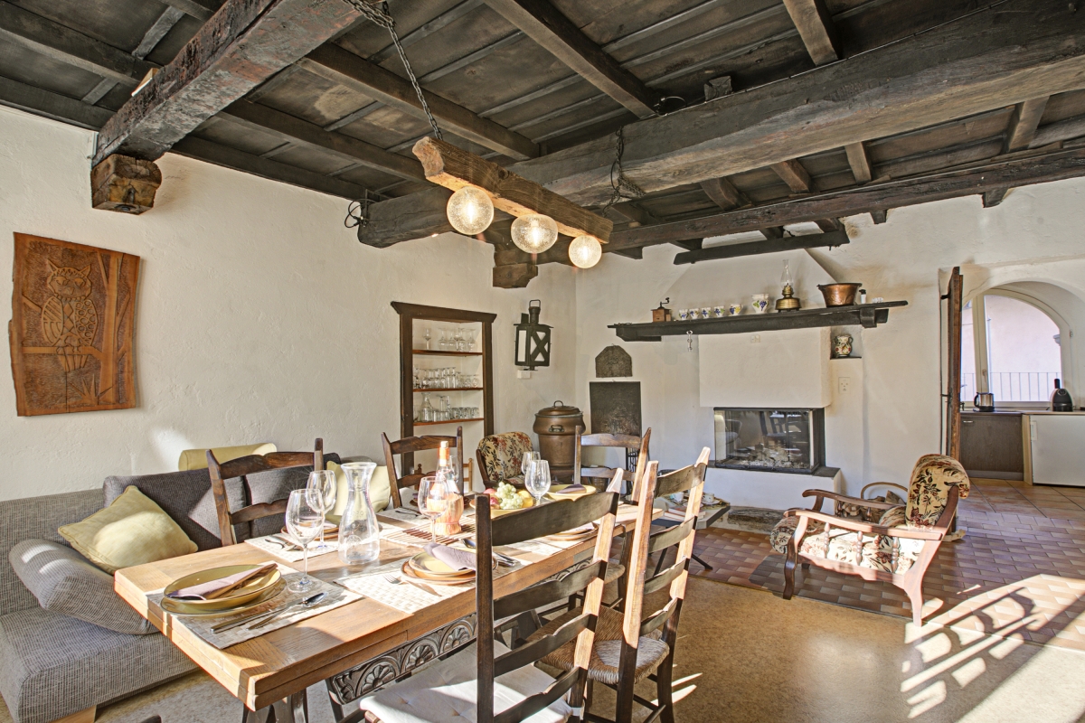 Located in the lakeside village of Caslano, with characteristic narrow streets and ancient buildings, is this blissfully peaceful 2-bedroom holiday apartment for 5 guests. The charming apartment is situated on the first floor and offers a suggestive living area with a fireplace and dining for perfect moments of relaxation and reconnection. There is also a fully-equipped kitchen, where guests will find everything they need to whip up delicious homemade meals including a coffee machine, dishwasher, oven, toaster and fridge with freezer.