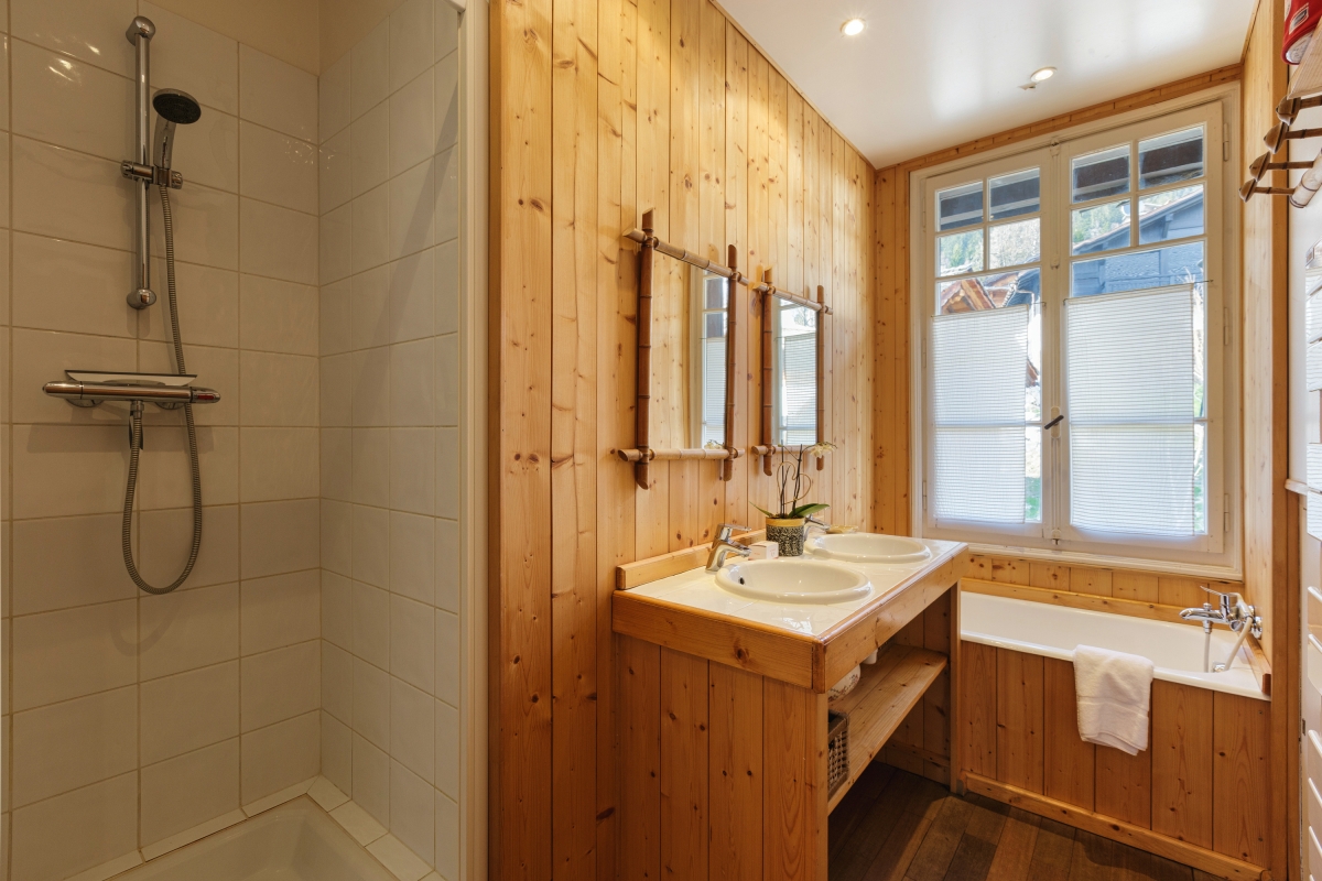 Bathroom 2: The second bathroom is equipped with a shower, a bath, a double washbasin and a WC