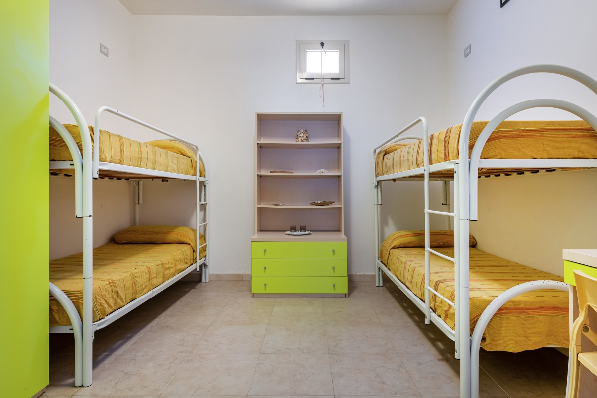 Bedroom 2: A quadruple bedroom with a set of bunk beds, terrace access and a wardrobe.