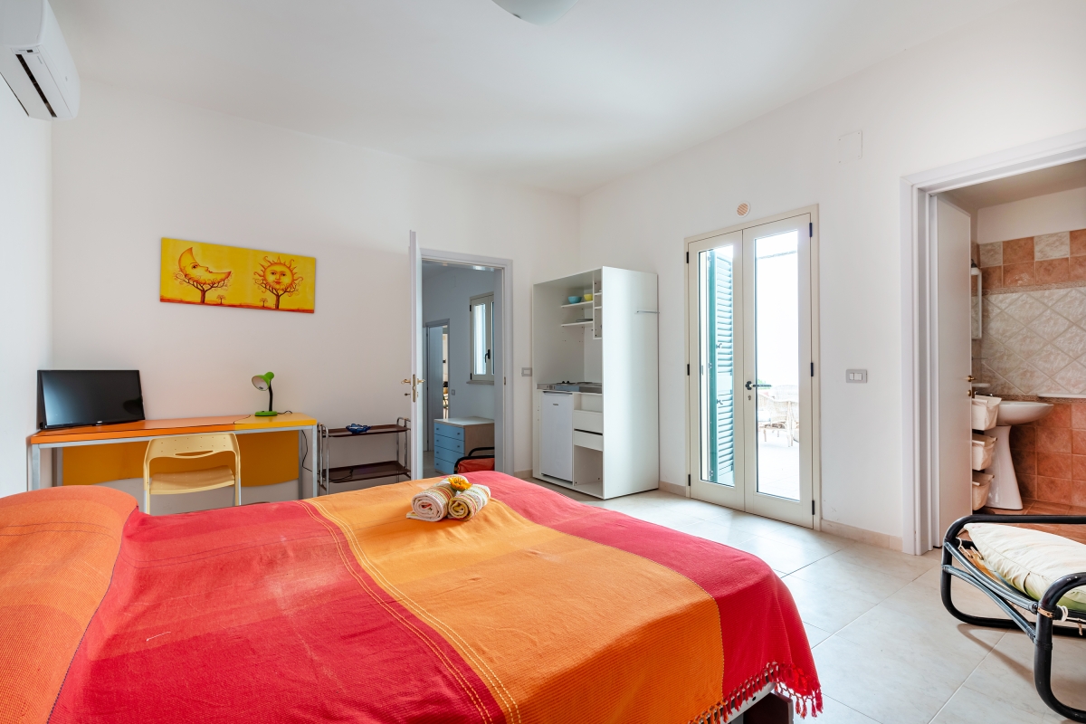 Bedroom 4: A double bedroom with terrace access and wardrobe.