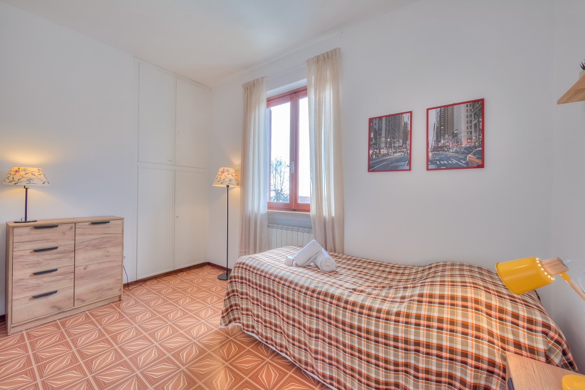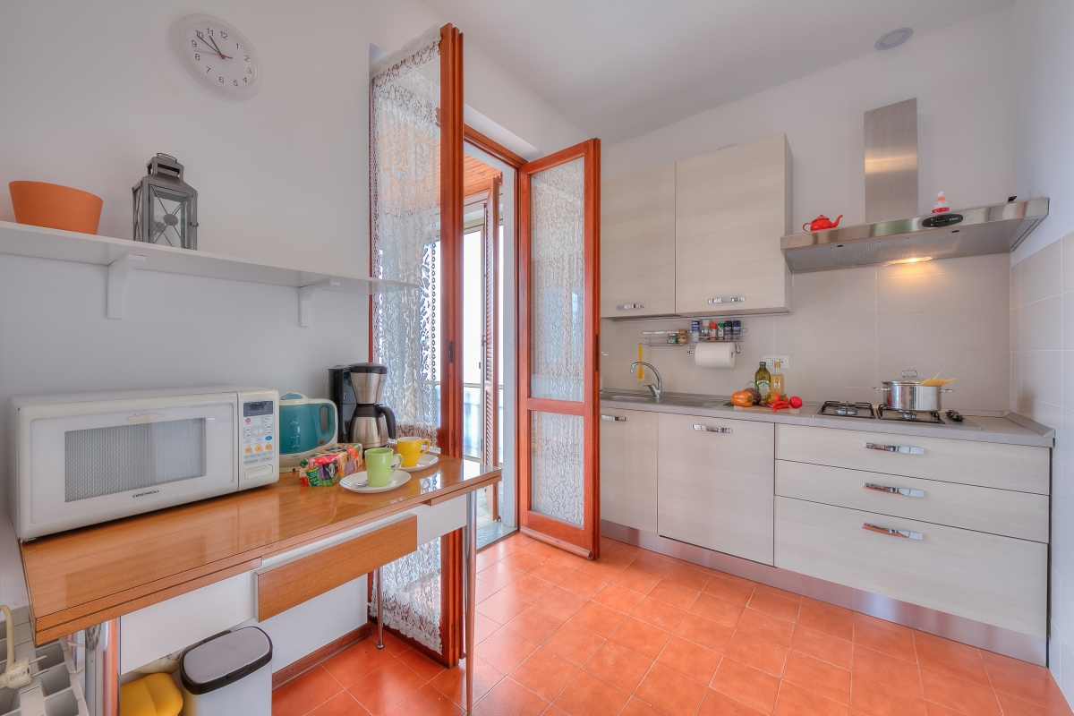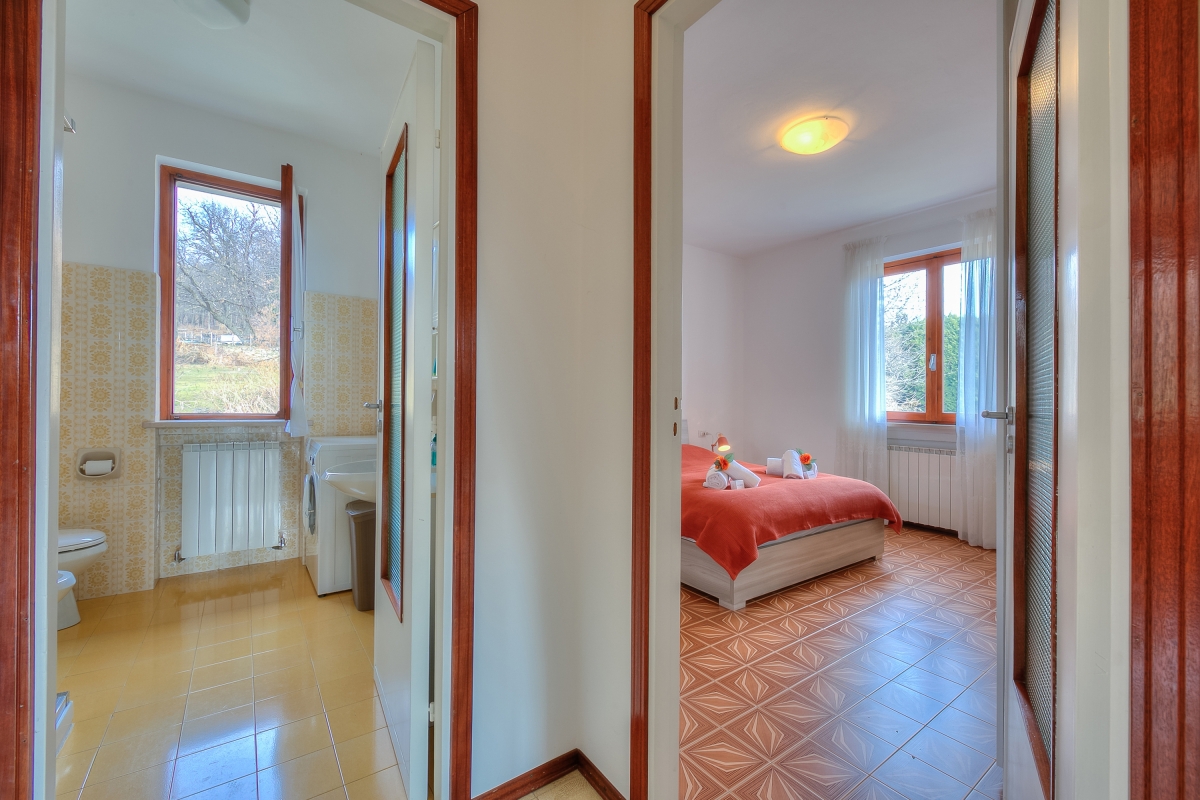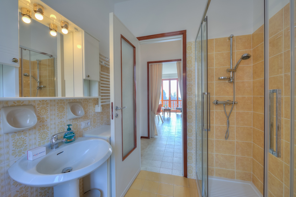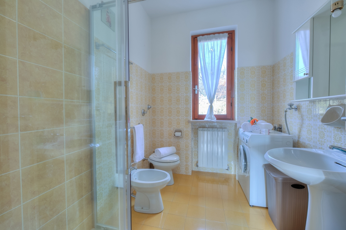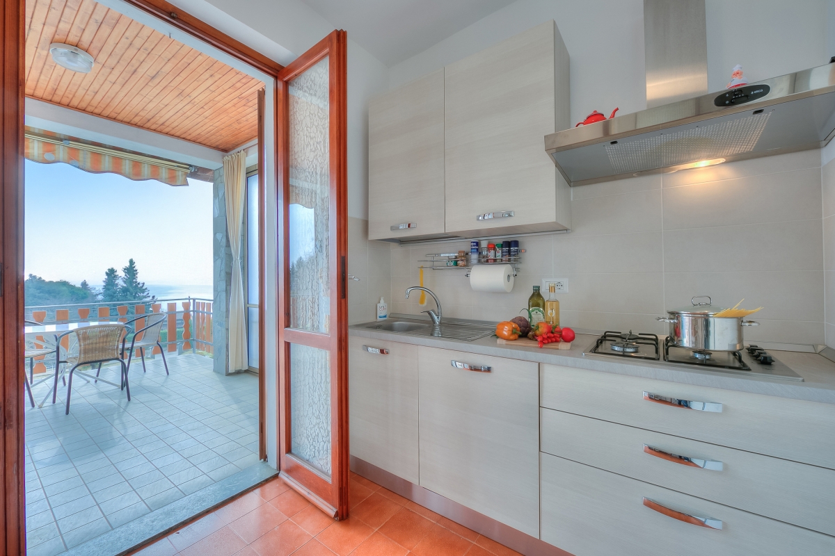 The modern apartment is on the first floor of a two-storey villa and offers an extraordinary view of Lake Maggiore from its beautiful, large terrace, where you can eat during the lovely summer and spring days. The flat also has a private garden which is fenced in on three sides and blessed with delightful sunshine. Inside the 2-bedroom apartment, there is a large living room and a separate kitchen, both overlooking the terrace and the lake. The kitchen is fully equipped with an oven, fridge, freezer, dishwasher, coffee machine, cooker hob, toaster, microwave and kettle.