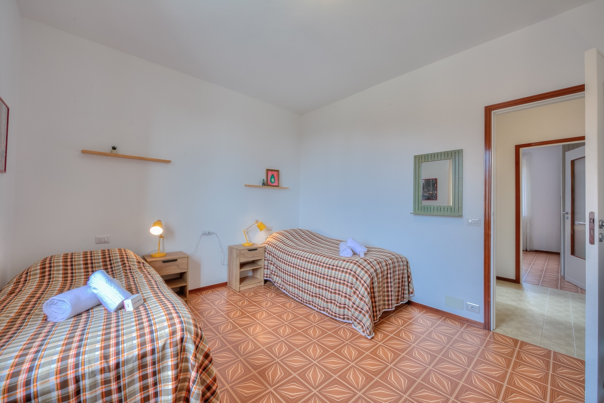 Bedroom 2: A large, twin bedroom with 2 single beds.