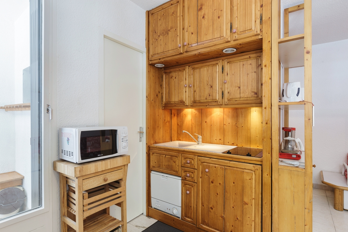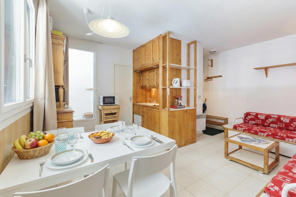 Located next to Aiguille du Midi cable car, this holiday apartment is the perfect accompaniment to a comfortable and carefree ski holiday. The apartment is located on the fourth floor and offers lift access along with ski storage. It is ideal for families and couples and features an open-plan living room with a flat-screen TV and dining, along with direct access to the mountain-view private balcony. There is also a well-equipped kitchenette with a microwave, fridge, toaster, drip coffee machine and induction hob and a full bathroom with stylish fittings to complete a carefree stay.