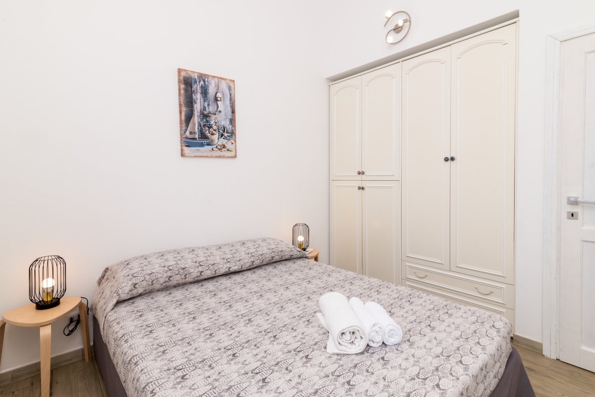 Bedroom 1: An airy bedroom with a double bed and large closet.