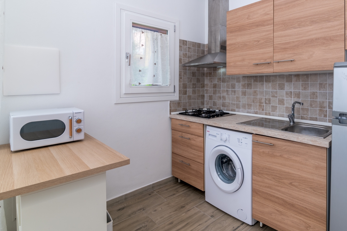 This 2-bedroom apartment can accommodate 6 people in comfort. It is modern yet built in an attractive Mediterranean style. The contemporary kitchenette in the living/dining room is well equipped with stove, microwave, refrigerator, and freezer.