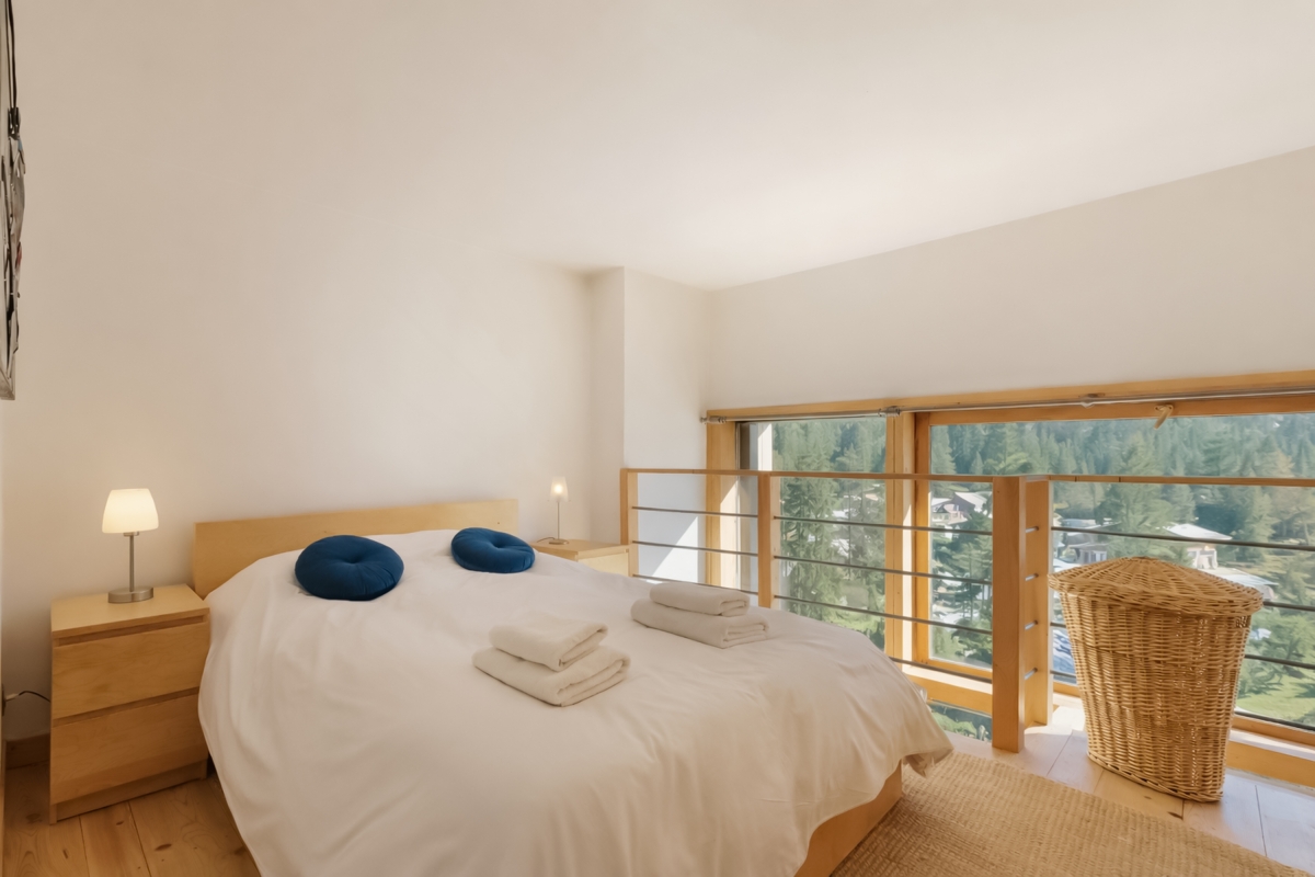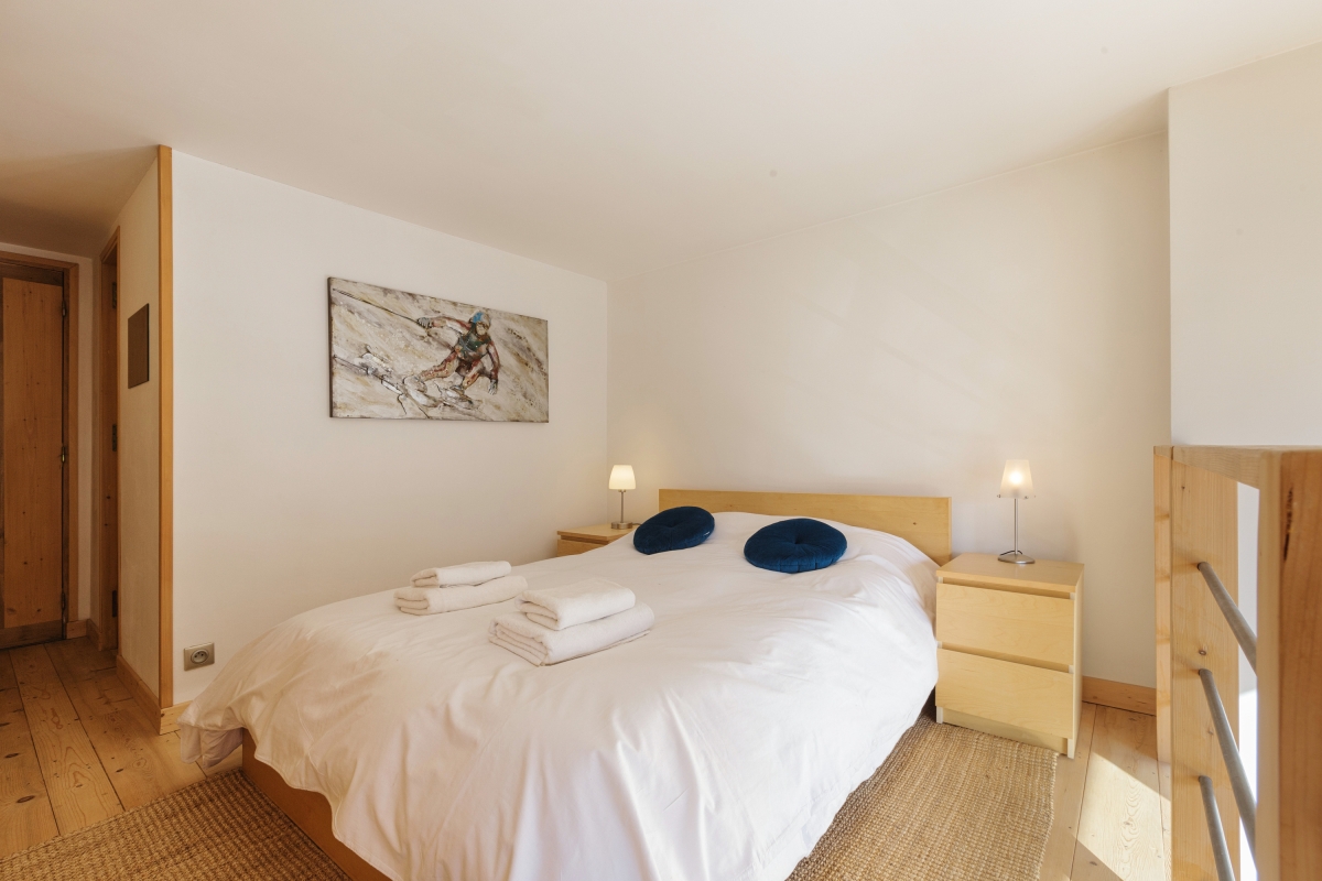 Bedroom 1: An open-mezzanine bedroom with a double bed.