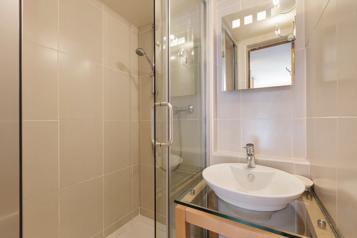 Bathroom 1: The contemporary-style bathroom features a shower and WC.