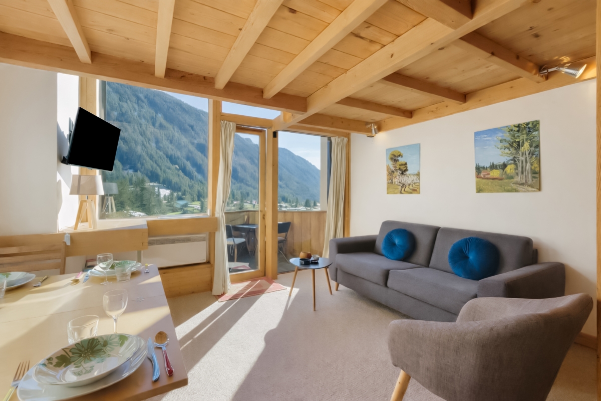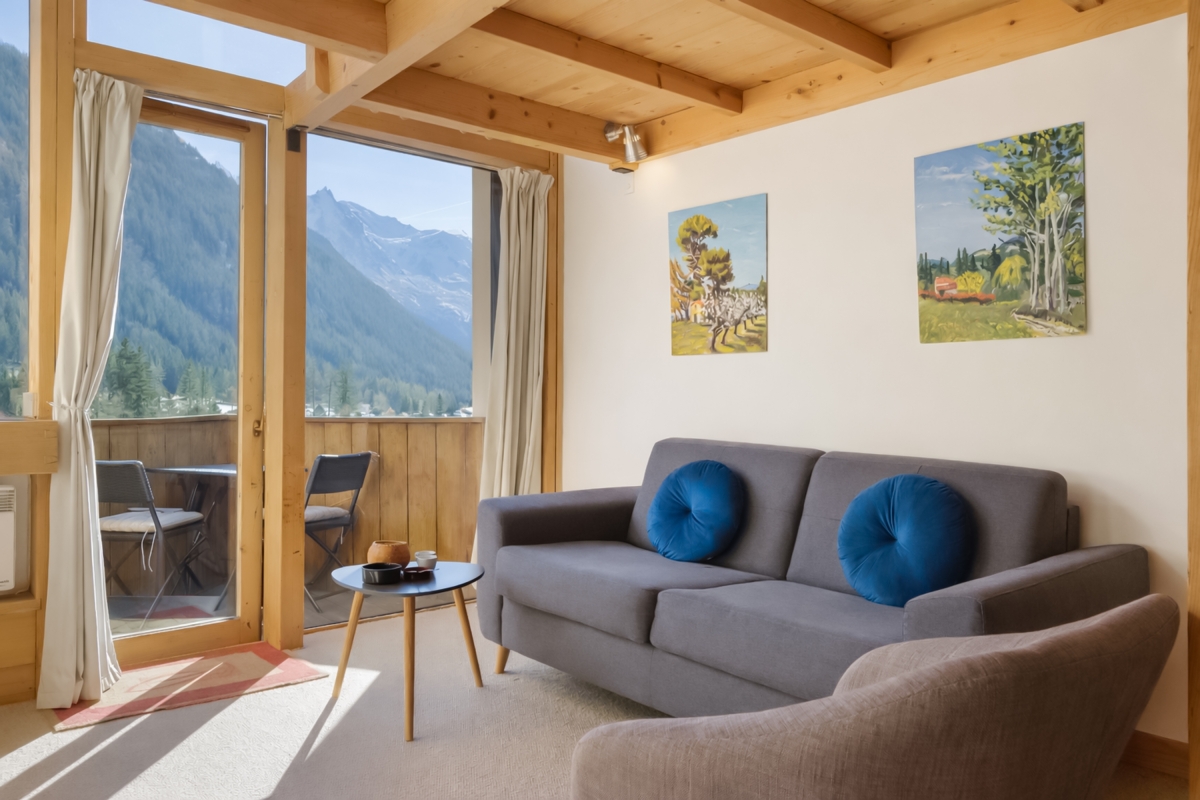 Set just beneath the spectacular Les Grands Montets, this sun-bathed mountain-view apartment for 4 promises a memorable ski vacation in Argentière!