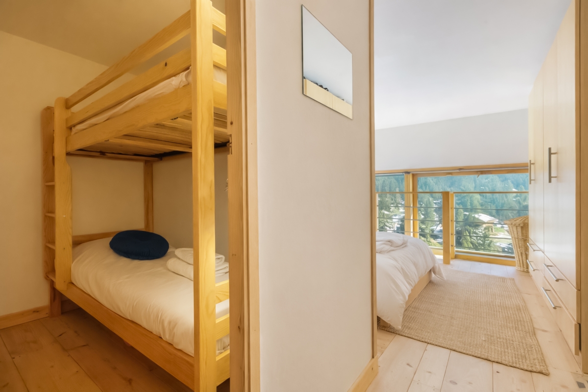 Bedroom 2: A cosy bedroom with 2 sets of bunk beds.