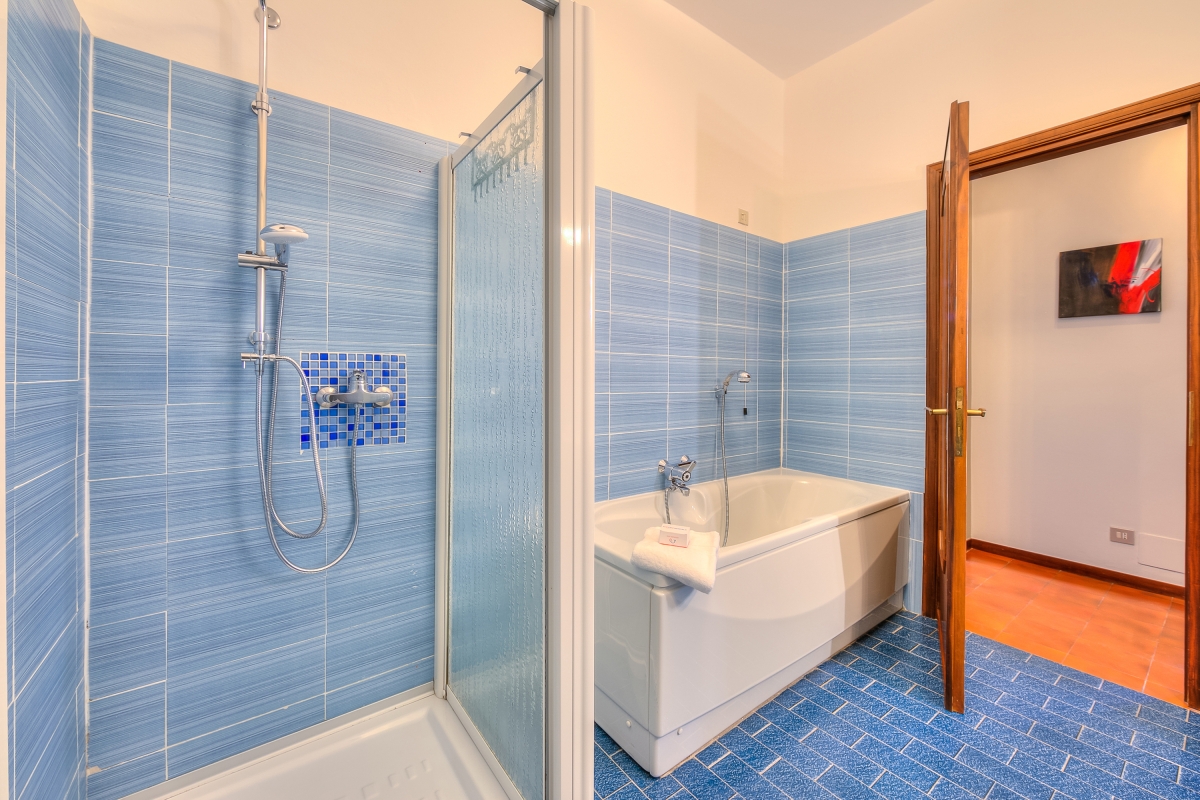 Bathroom 1: A sizeable shared bathroom with a bathtub with shower, bidet and WC.
