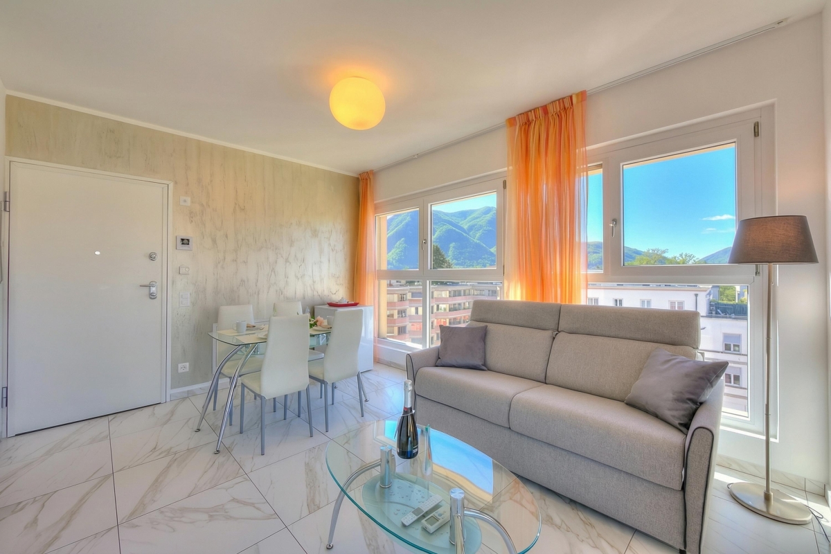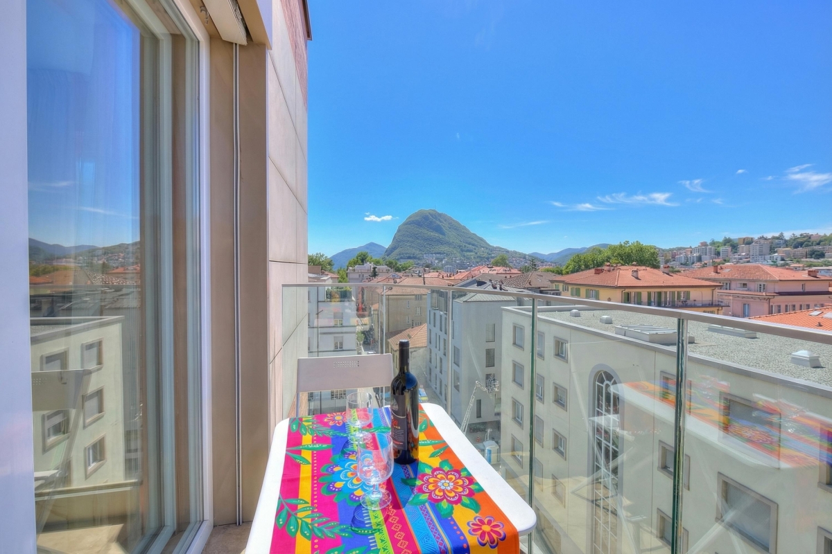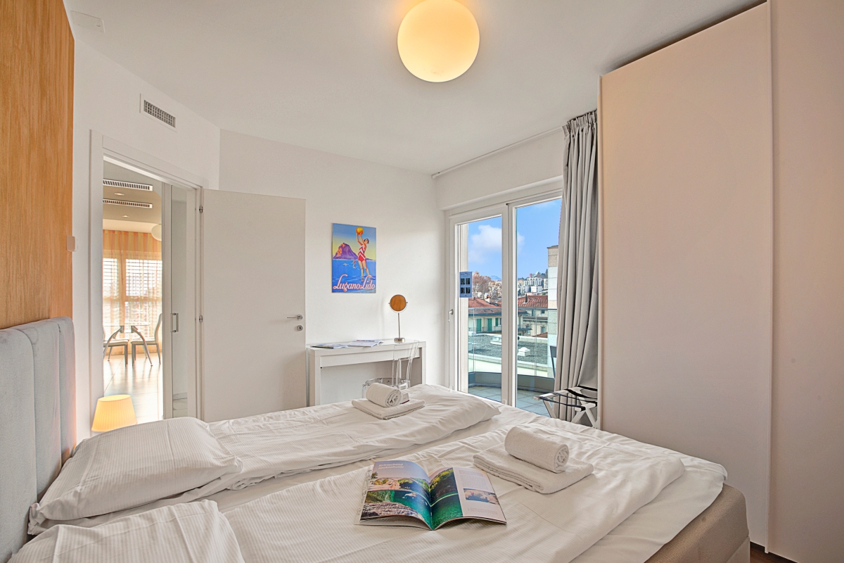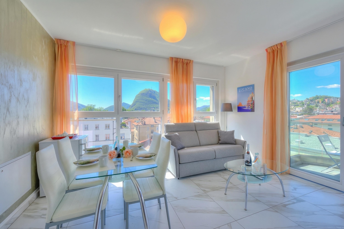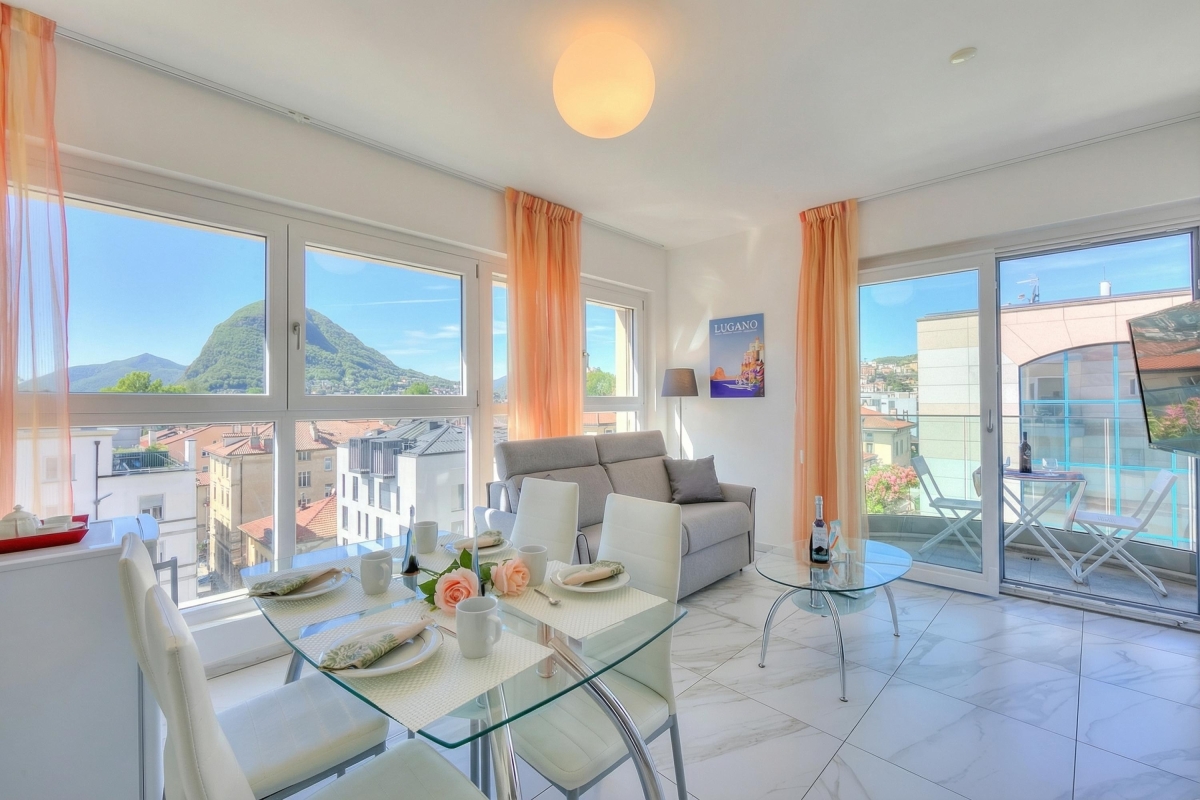 Just a few steps from Lake Lugano, in a delightfully sunny apartment complex, this modern, 1-bedroom holiday apartment for up to 4 guests is perfect for a restful vacation but also while in Lugano for work and business.
