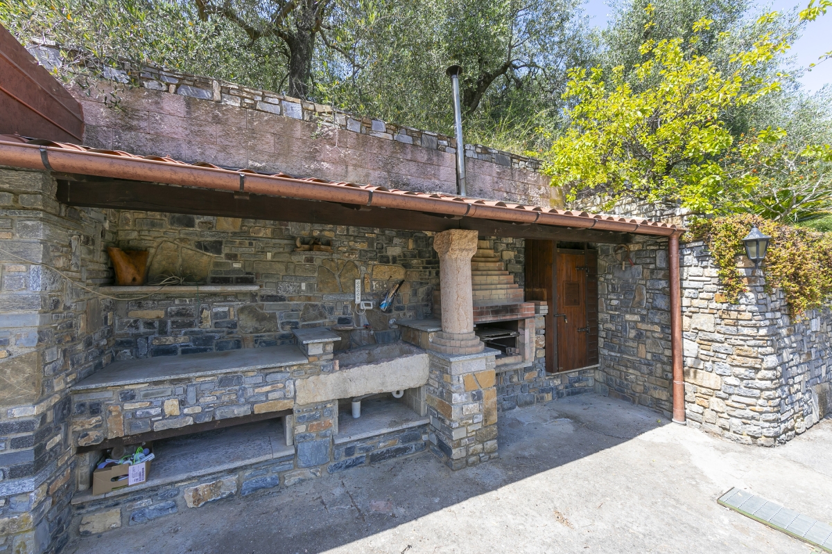 The outside space has been as carefully laid out as the interiors. There is a shaded outdoor kitchen, with a BBQ and carved stone sink. The terrace is furnished with a table and chairs for dining al fresco. Children will love the outside playhouse.