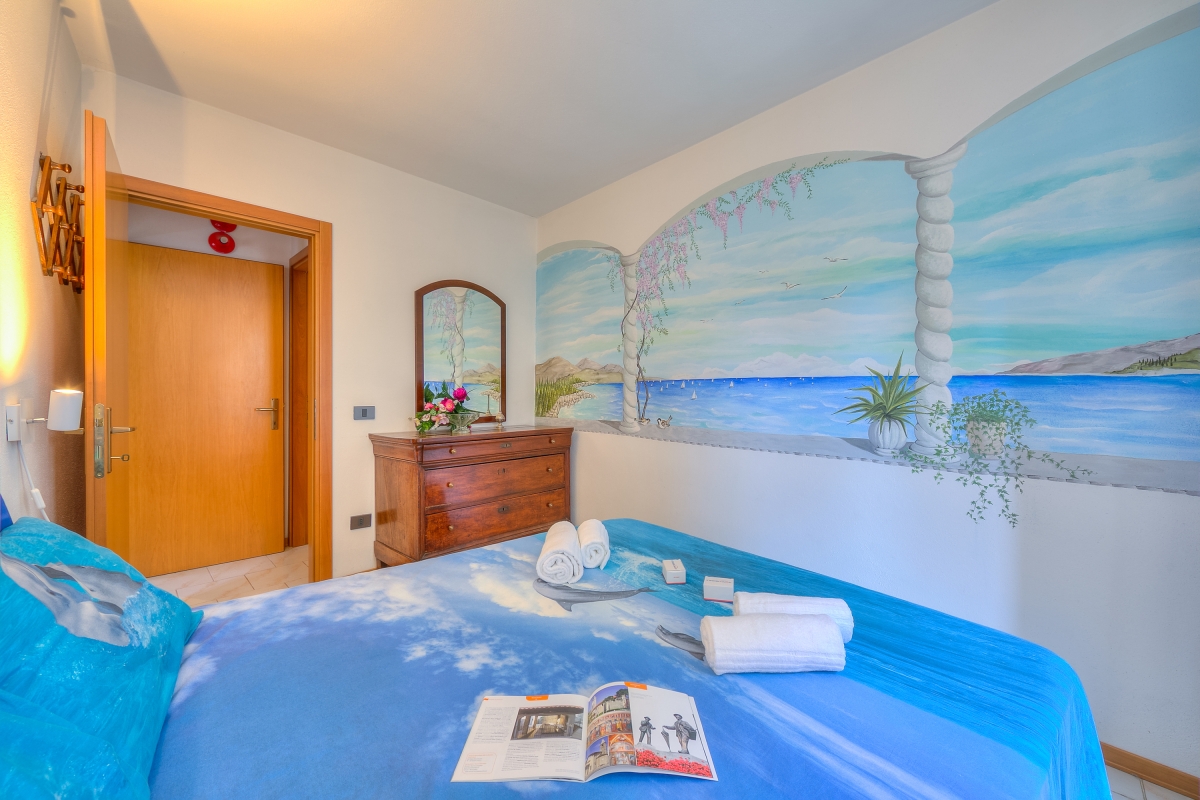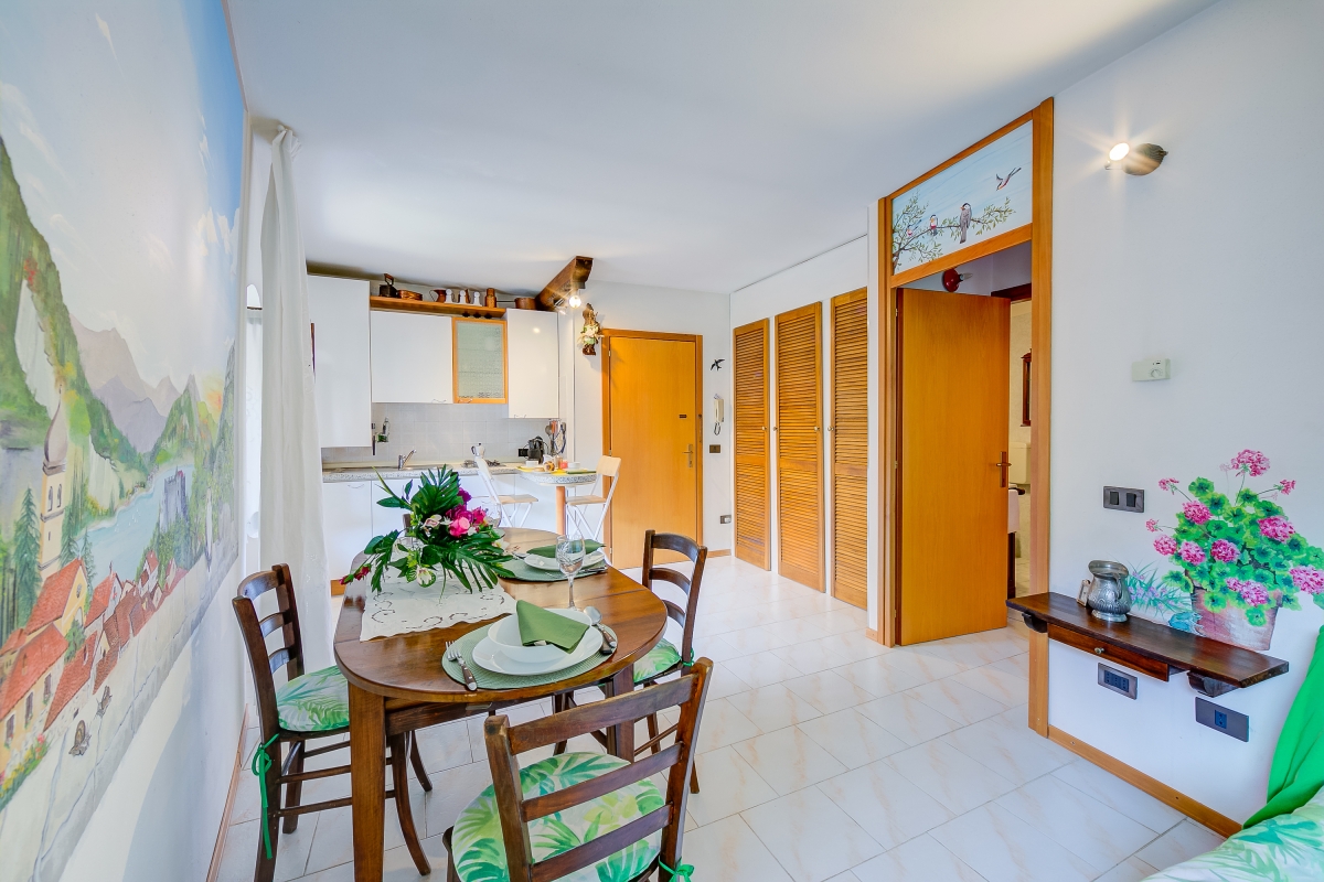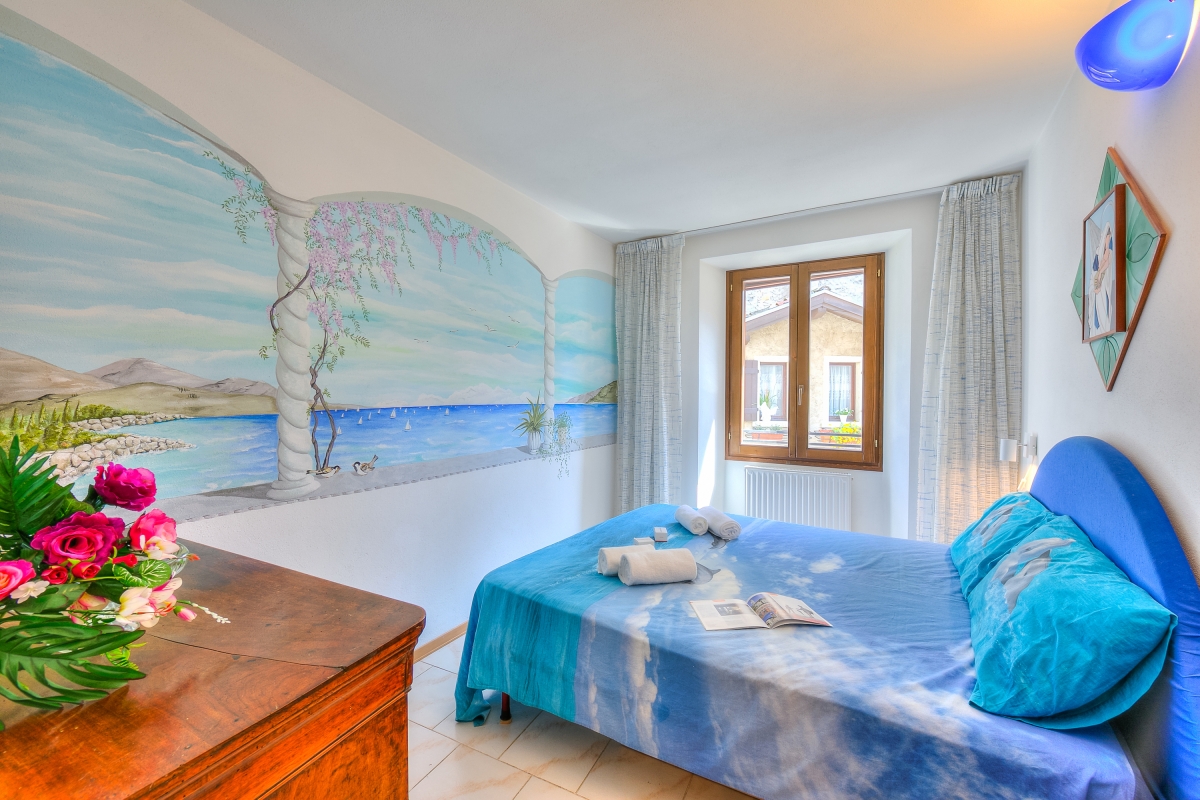 Located about a 5-minute drive from the charming Canale di Tenno and the resort of Riva, this one-bedroom apartment is for those who want to stay in a sun-soaked, green and peaceful zone without being too far from the attractions of the area. The holiday apartment offers a shared pool and garden for carefree relaxation, as well as open-air dining and BBQ to spend quality moments together. Inside, this artsy and family-friendly retreat you will find beautifully painted walls enhancing its modern interiors and a full kitchen with a Moka coffee machine, oven, toaster and fridge with freezer for a carefree stay. The apartment also features a Smart TV and Free Wi-fi.