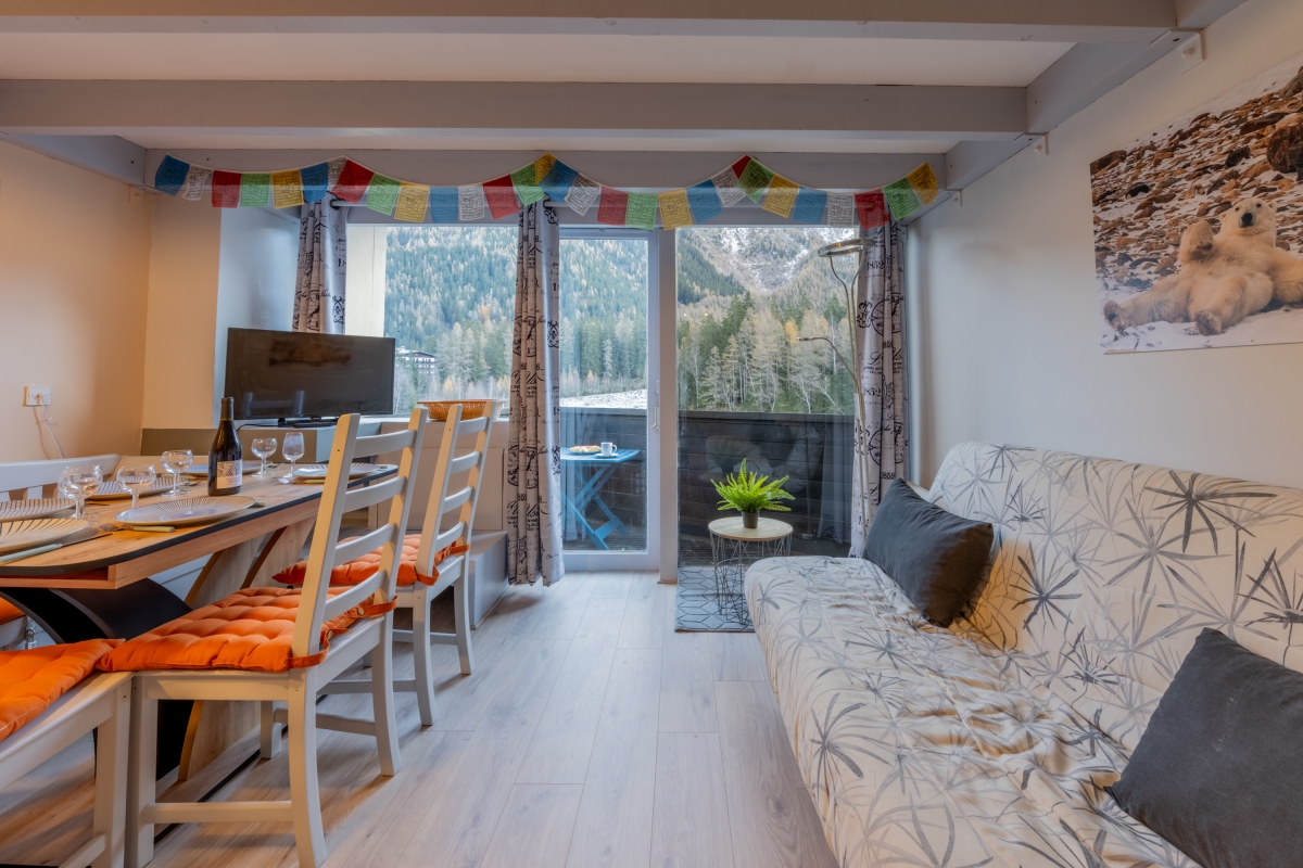 The apartment is on the edge of the village of Argentière, close to the forest, but just a short walk from all the amenities; the cable car for Les Grands Montets skiing area (230 metres); ski slopes and shuttle buses.