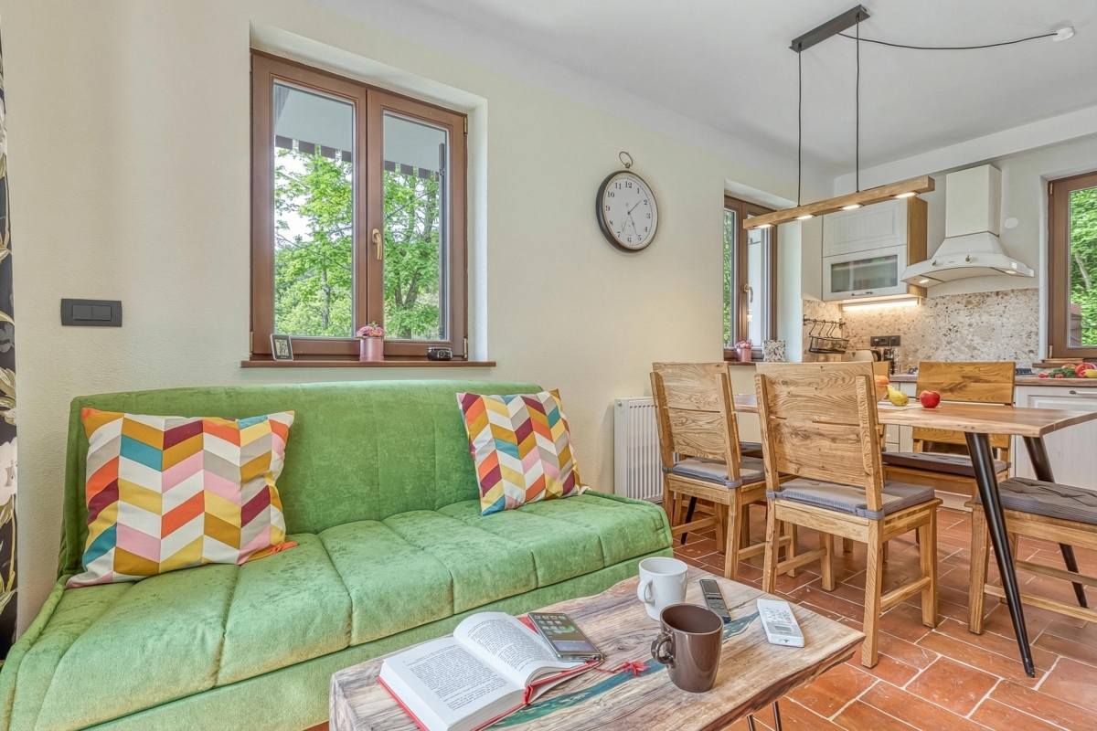 An ideal opportunity to really get away from it all, in comfort! This chalet, on the banks of the Kolpa River and surrounded by unspoiled woodland, makes the ideal retreat for a family or friends at any time of year.