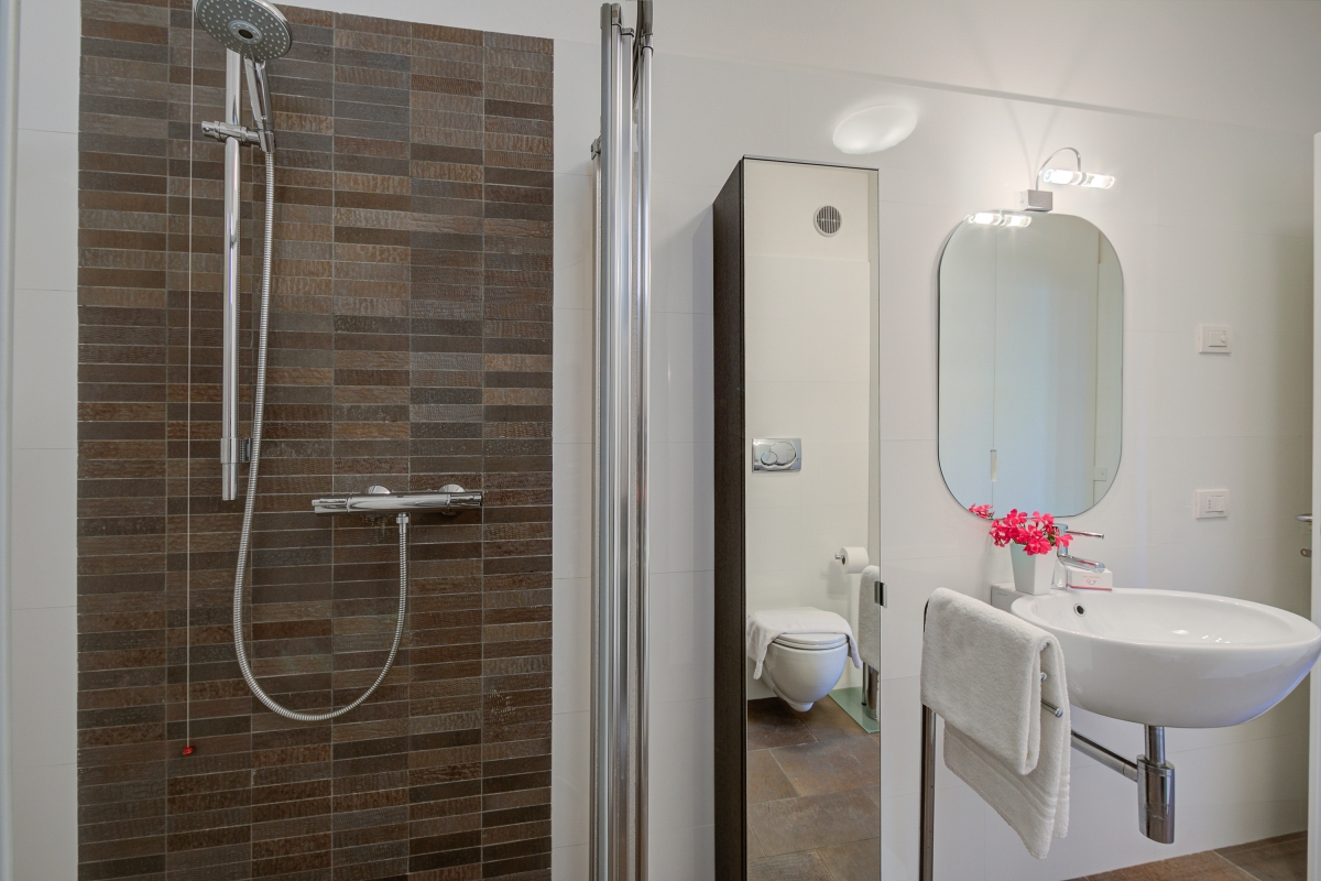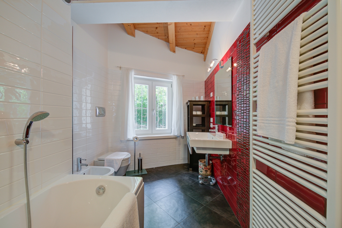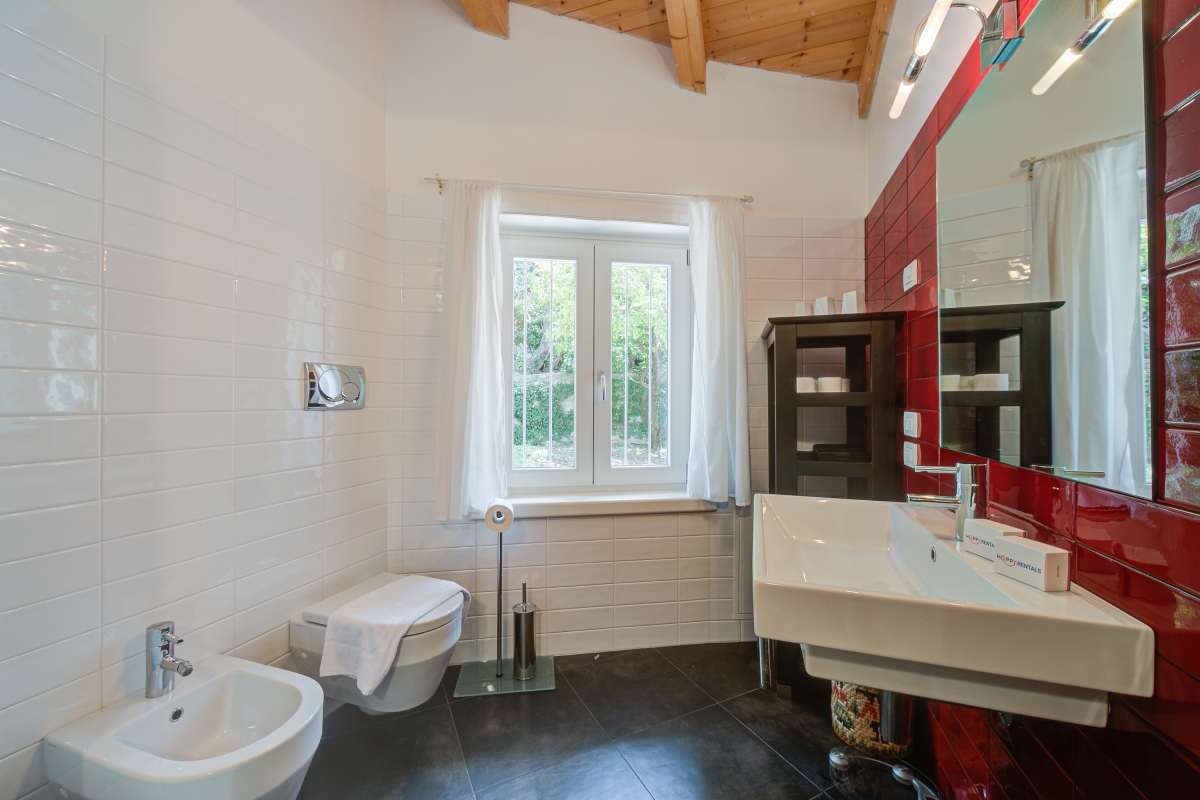 The villa has 2 modern bathrooms. Both have a toilet and bidet, one with a shower and the other with a bathtub.
