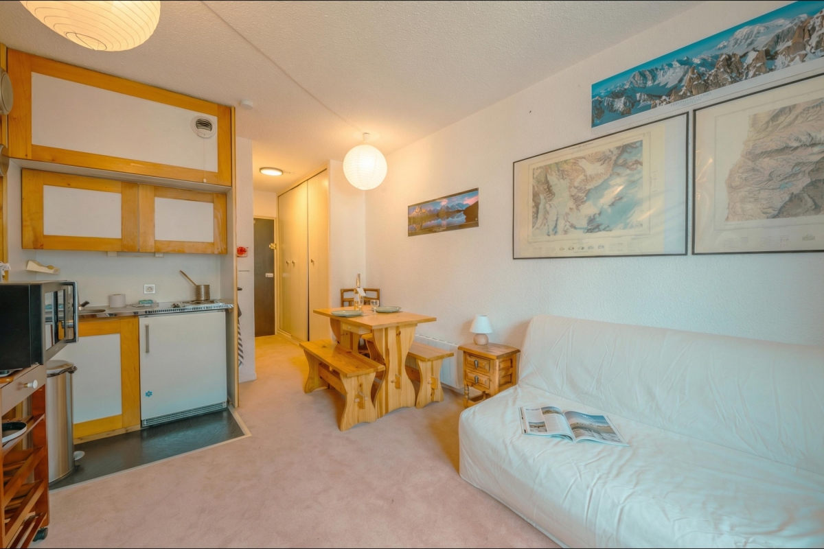 Explore the slopes of the famous Aiguille du Midi from this centrally located balcony holiday studio for 2!