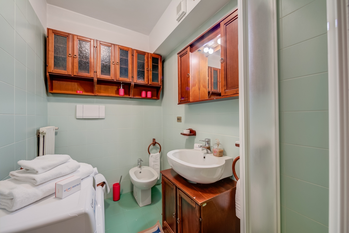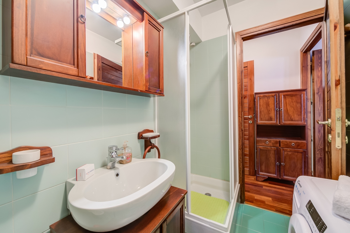 There is an independent bathroom with a shower, WC and bidet, plus a washer-dryer.