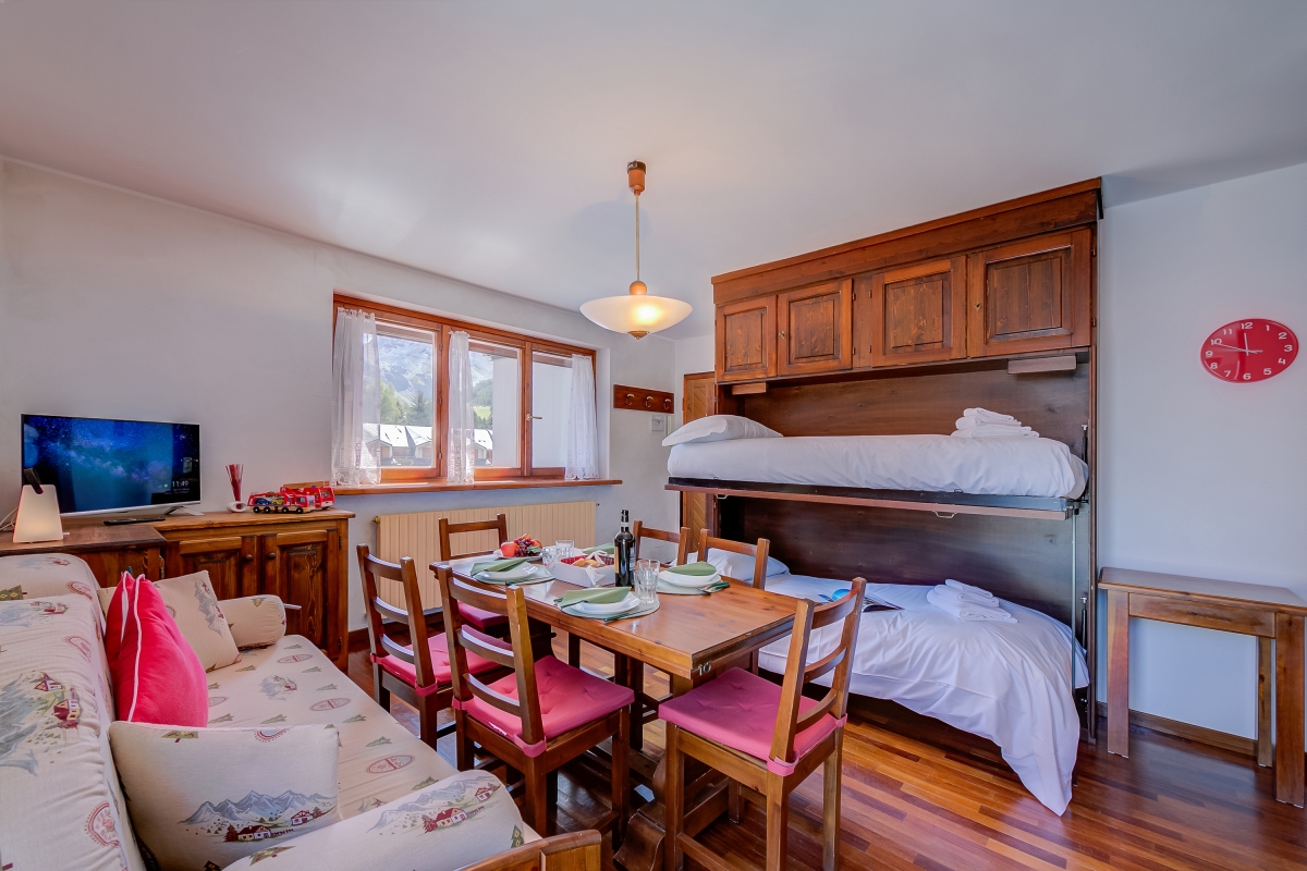 In the main square of the resort of Sestriere, just a short walk from the ski slopes, this contemporary apartment for 4 people makes an ideal base for an exciting holiday at any time of year.