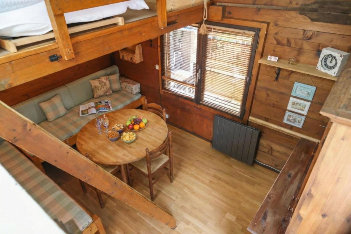 Located just a minute's drive away from the centre of Chamonix, this 2-level wooden chalet promises a comfy and convenient vacation base. The inviting chalet has a large and sun-soaked terrace equipped with open-air dining and BBQ to enjoy the beautiful alpine view and relax in a lush atmosphere. Inside, it features a well-equipped kitchenette along with a cosy dining area. An induction hob, oven, microwave and fridge are available to facilitate a carefree self-catering stay.
