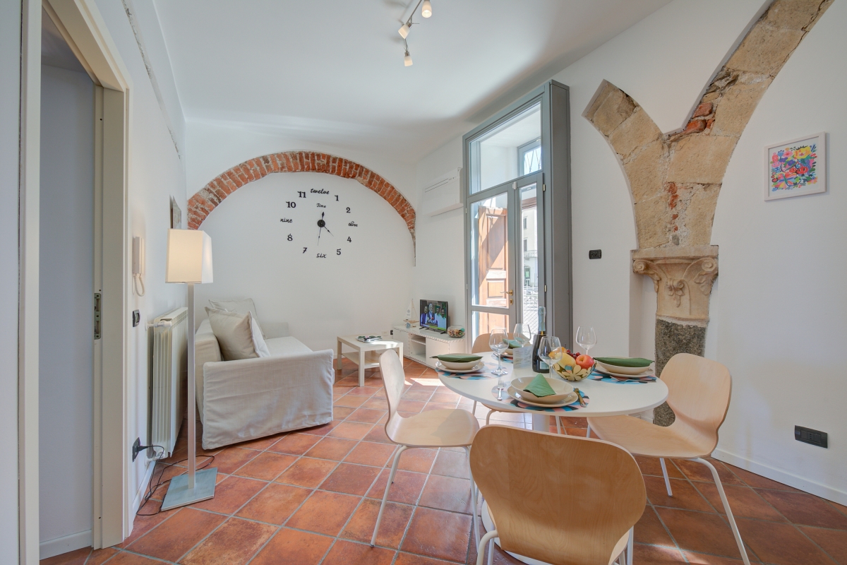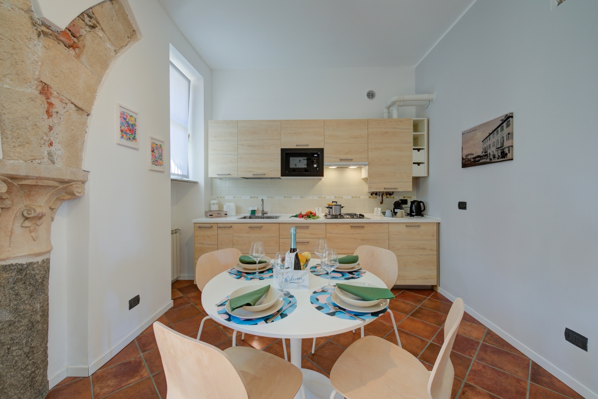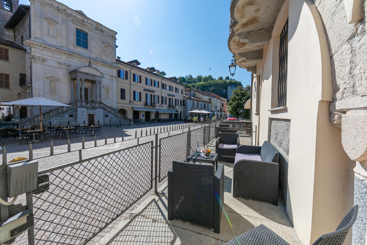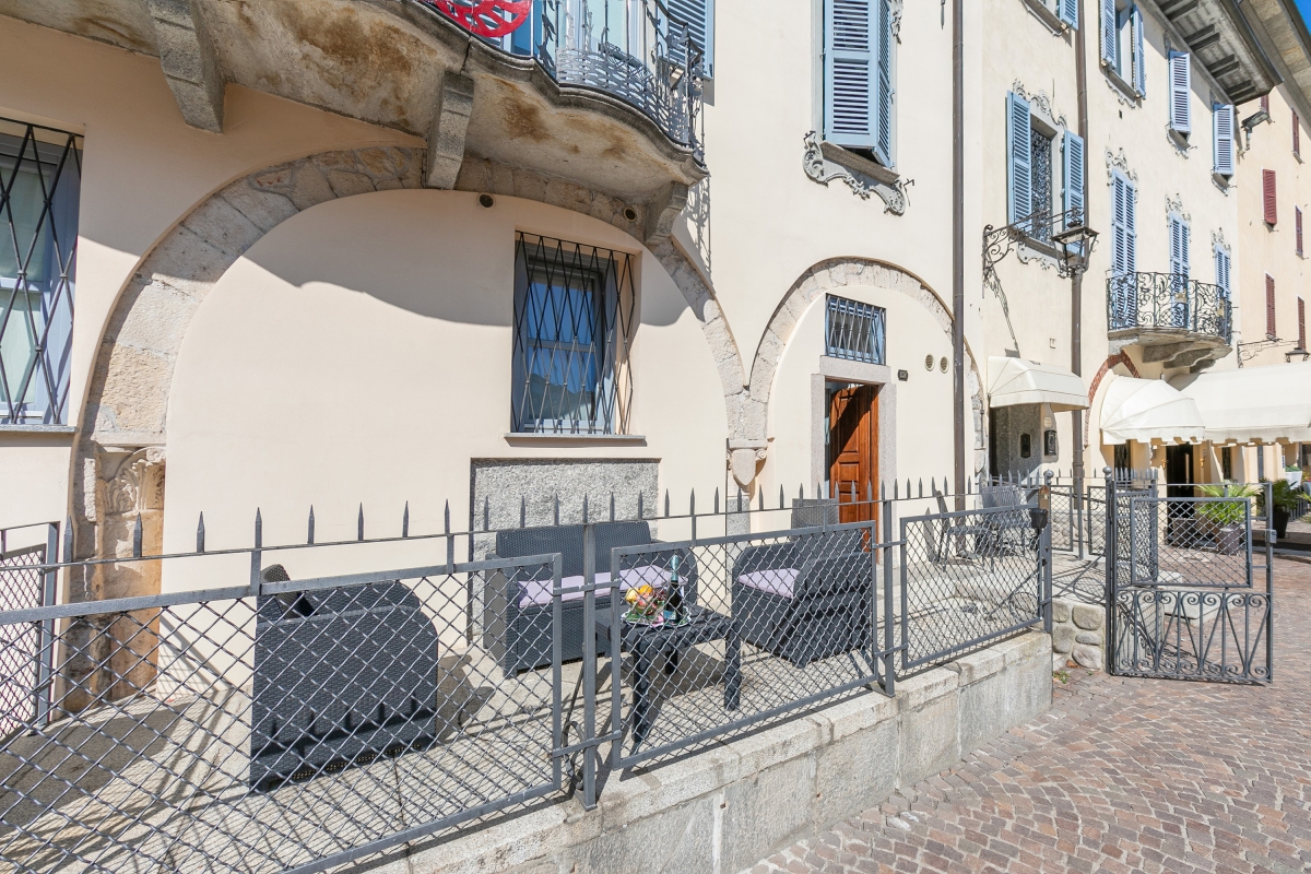 The ground floor apartment is in a building called Dimora dell'Antico Porto. It is right on the shores of Lake Maggiore in the oldest piazza in the town of Arona, next to the 14th century harbour, which used to be much busier than it is today. The charming little church across the square from the residence was built in 1592.