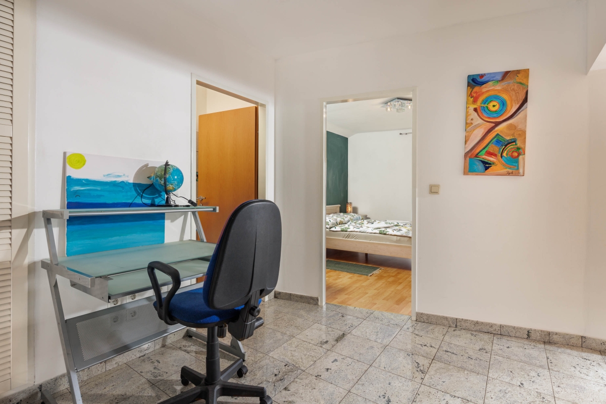 Bedroom 3: The third bedroom enjoys access to the terrace and is furnished with a double bed and a wardrobe