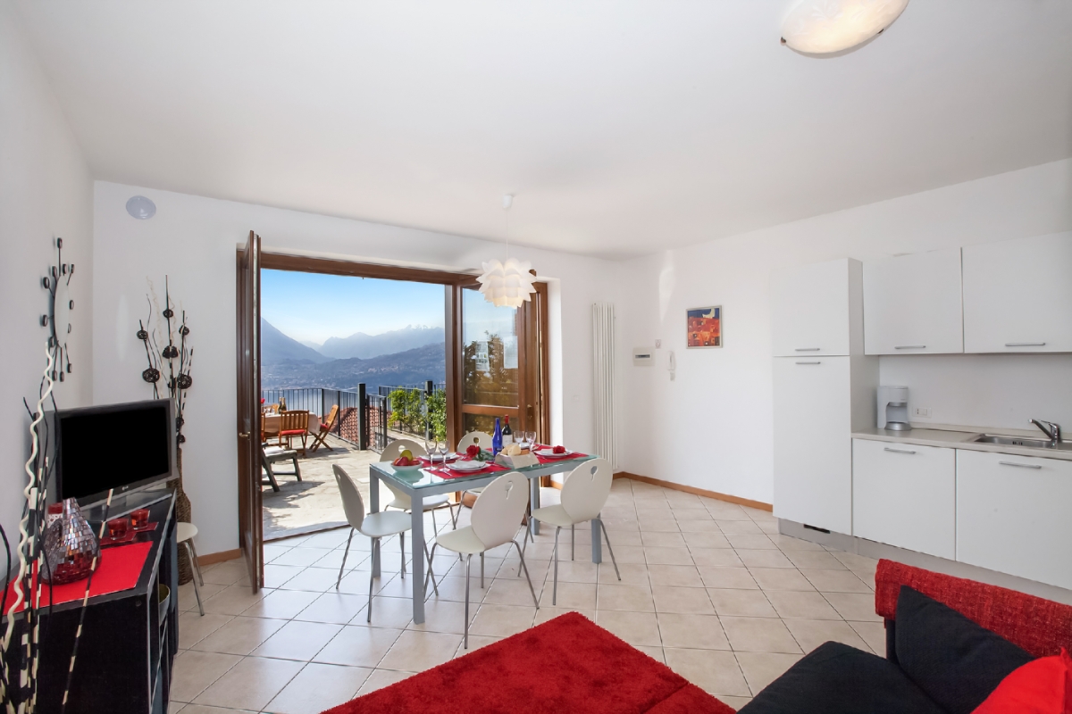 The modern Kitchen is fully equipped to suit your self-catering needs and a stylish dining area completes the interior living area. Glass doors sweep open to provide a large sunny Terrace with Alfresco Dining area with table and chairs and boasting some of the most dramatic and memorable Lake Como views imaginable!