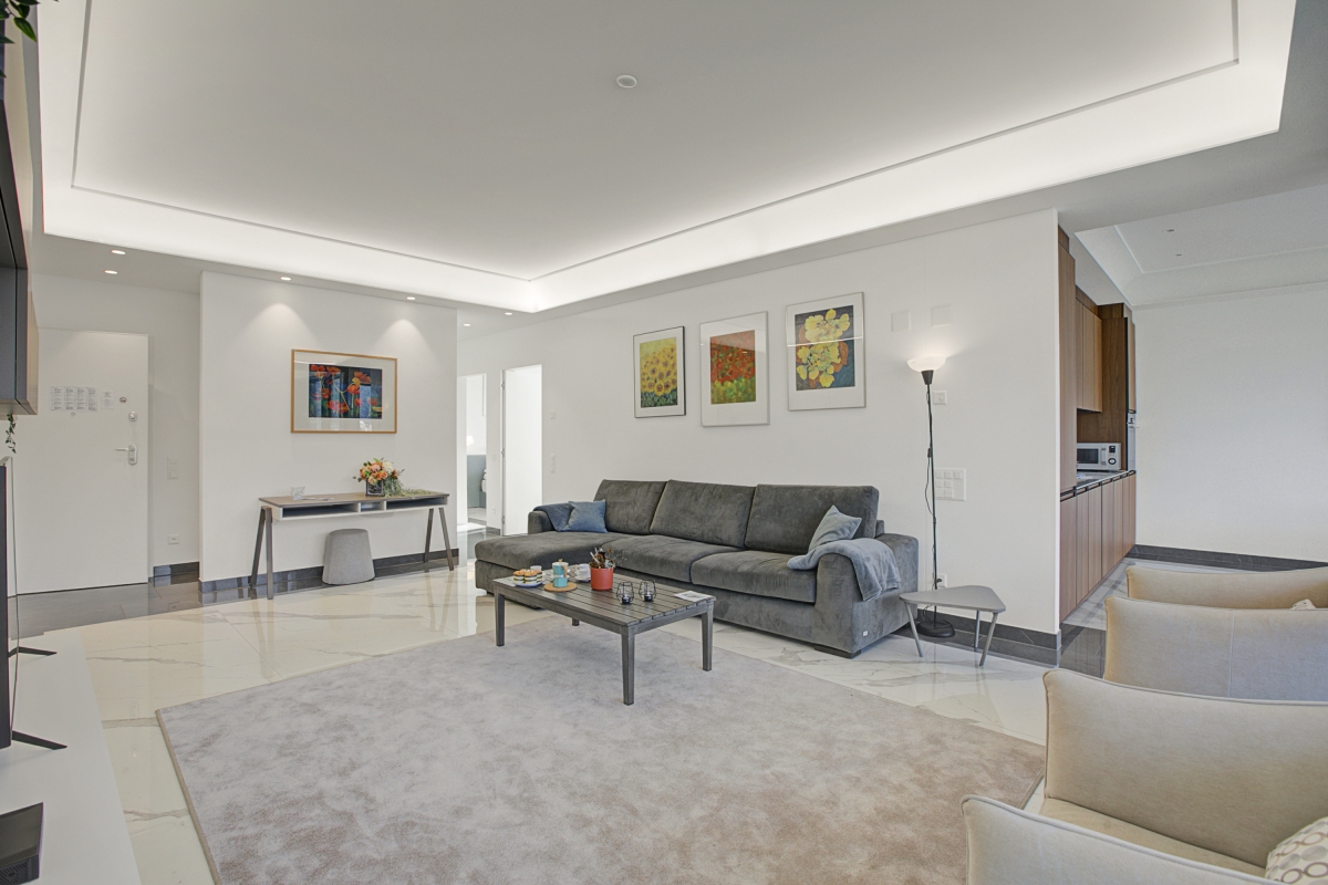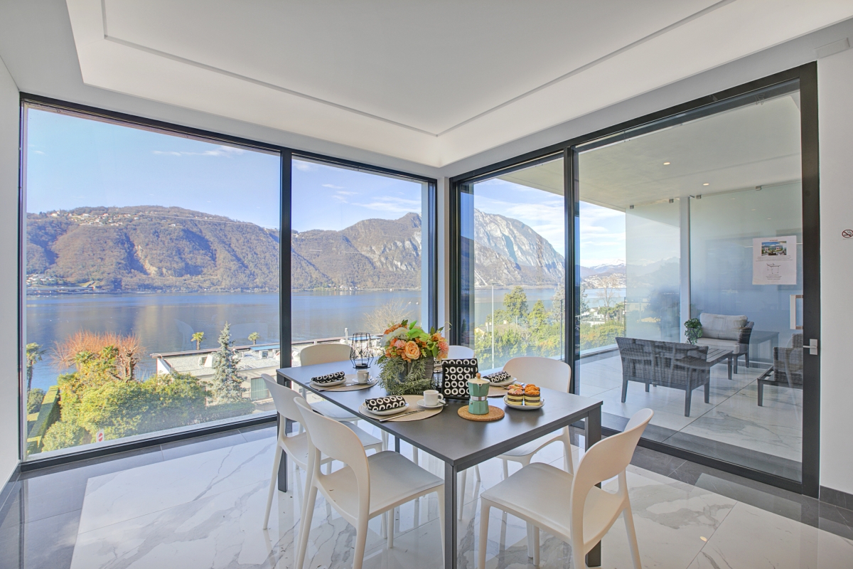 Nestled in a delightfully peaceful location, just a few steps from the lakeshore, this modern, light-filled holiday retreat is perfect for a relaxing and indulgent holiday in Lugano all year round. This luxurious, 2-bedroom apartment for 4 offers toasty underfloor heating and a lovely terrace enveloped in an intimate atmosphere for you to take the first sip of your morning coffee, or dine with your loved ones as the sun's rays play with romantic hues on the lake.