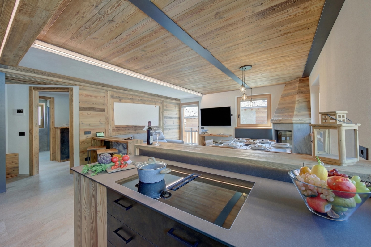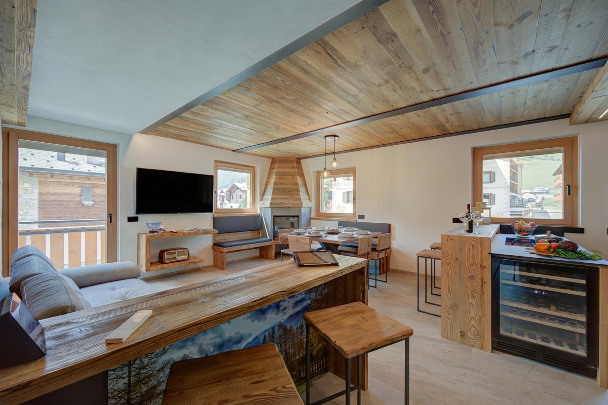 Located just a few steps from the ski lift high-speed Carosello 3000, this sun-dappled, 3-bedroom getaway for 6 is perfect for large families and groups. Come back to the apartment after your ski adventure and unwind in the infrared sauna with a gorgeous view or the Turkish bath in the cosy bathroom. Or if hunger guides you, then the modern and elegant kitchen of the apartment is perfect to whip up delicious meals and enjoy the large indoor dining of the retreat. A dishwasher, microwave, oven, Nespresso machine and induction hob at your disposal.