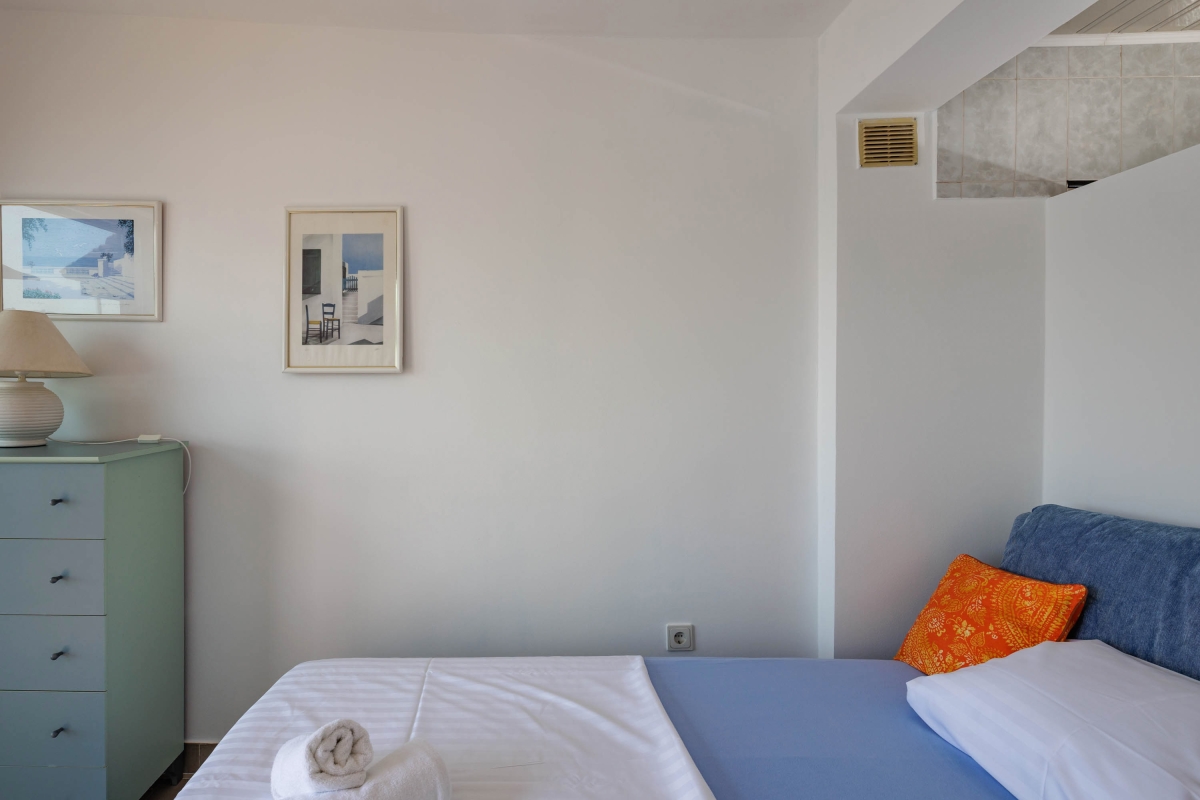 Bedroom 1: The master bedroom has a stunning sea view, with sliding glass doors leading directly onto the balcony. The room has a double bed, drawers and an en suite bathroom.