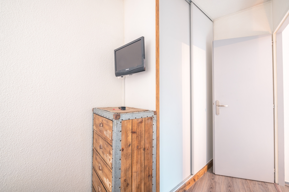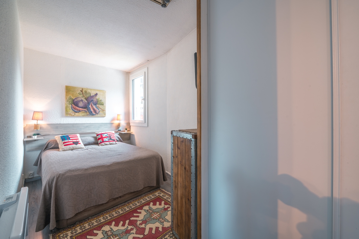One bedroom has a double bed, a wardrobe, and a single sofa bed in the living room to accommodate 1-2 guests.