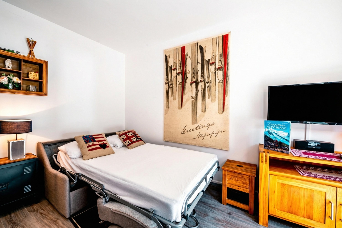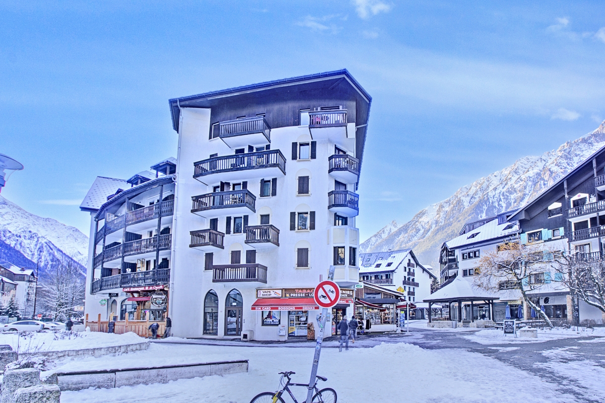 Ski down the slopes of the famous Aiguille du Midi from this centrally located balcony apartment for 3!