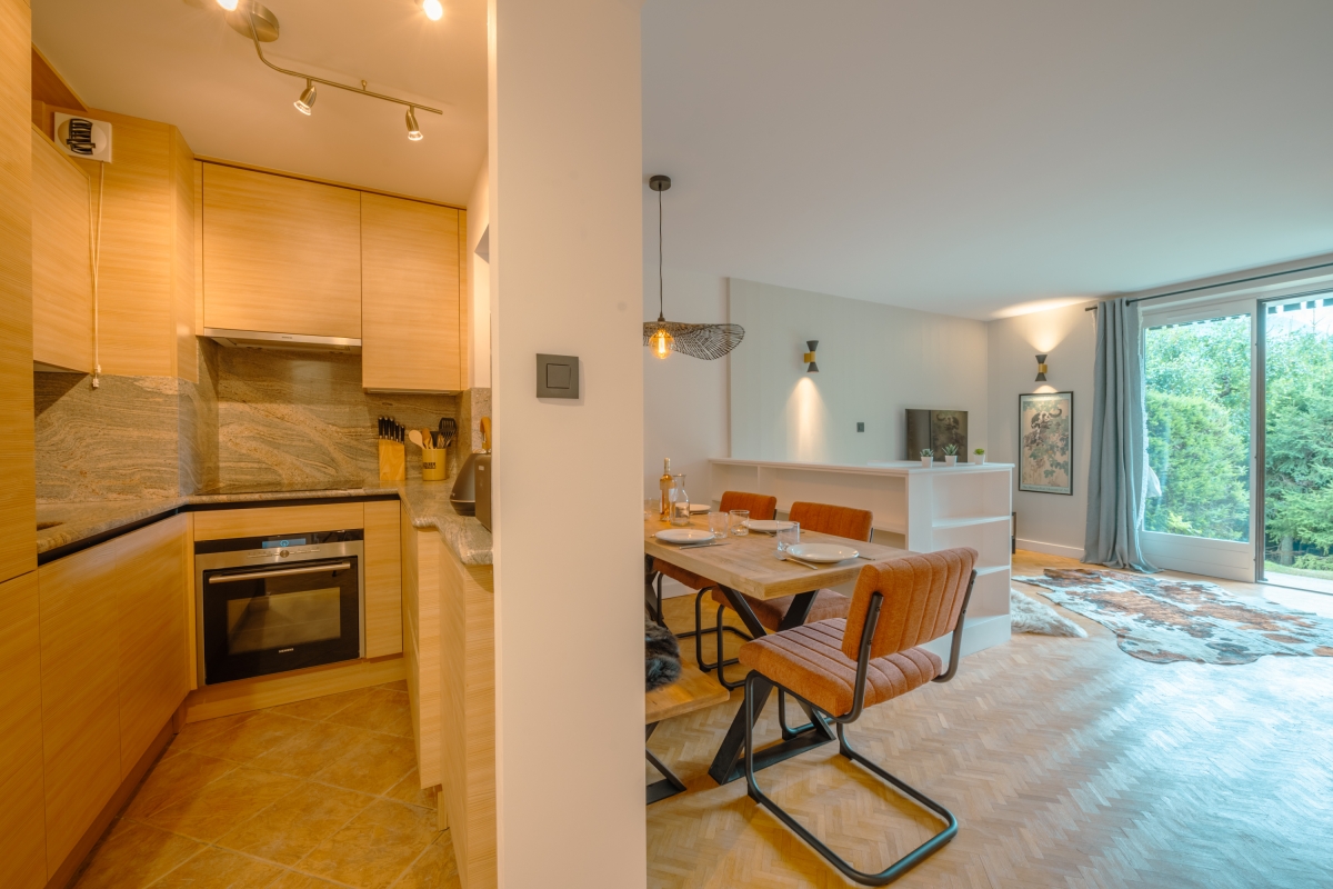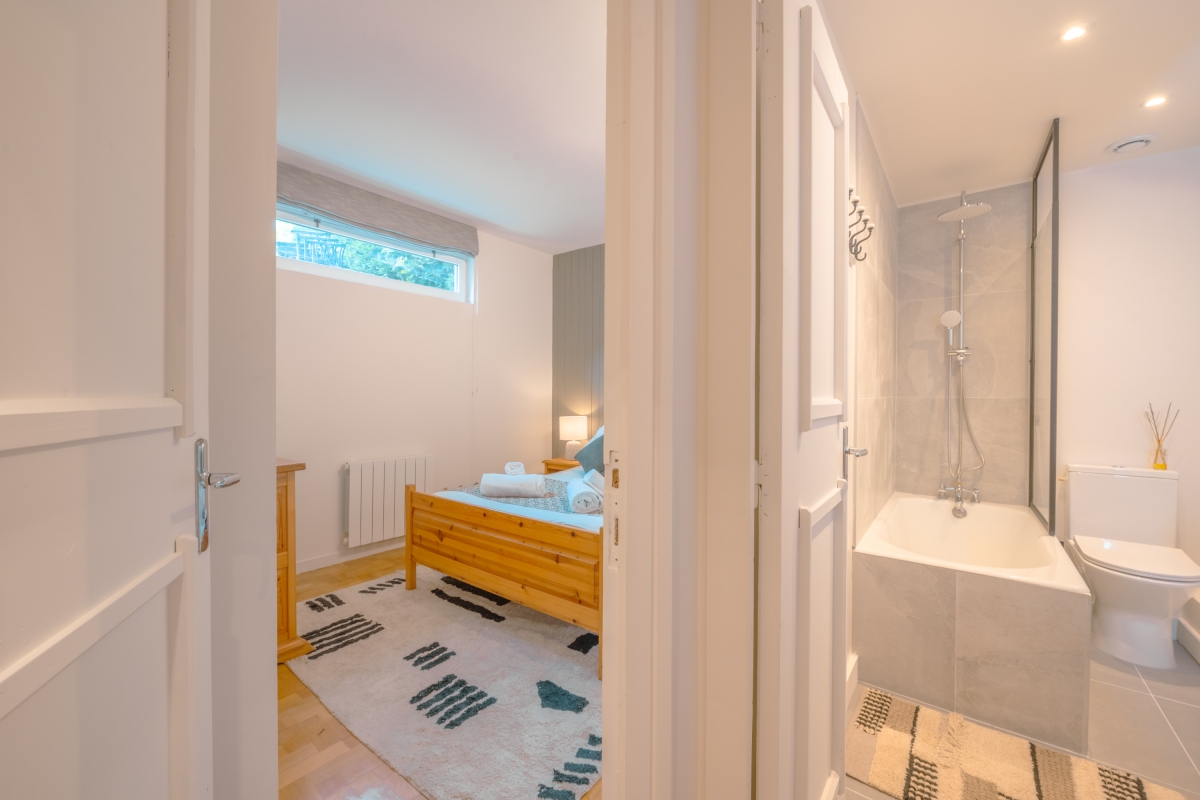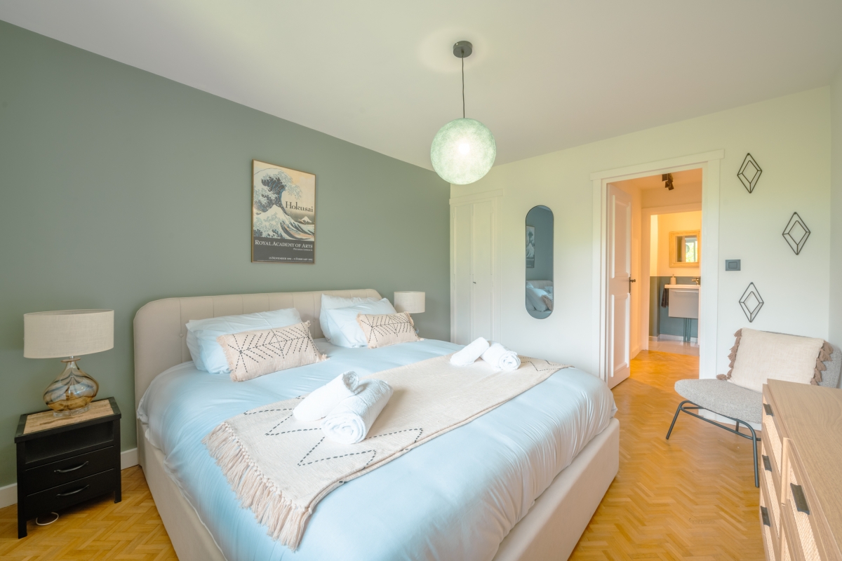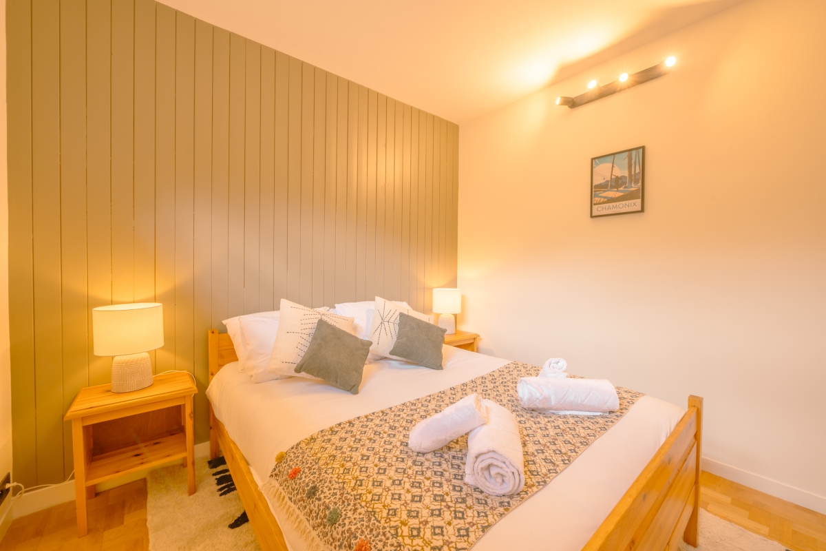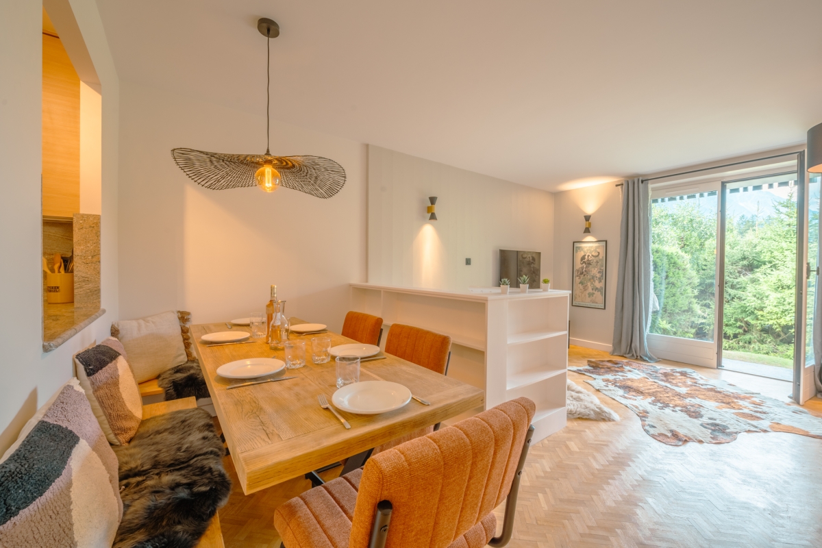 Spread over 2 levels and just a few steps from the enchantment of a forest and lake, this spacious, 2-bedroom apartment for 6 is ideal to unwind in the refreshing alpine atmosphere with your family and friends. The apartment features a magnificent south-facing view from the living room and the garden, giving you a direct panorama of the Mt Blanc range. Along the river, it is a 15-minute walk to the centre of Chamonix or even quicker by bike ride.