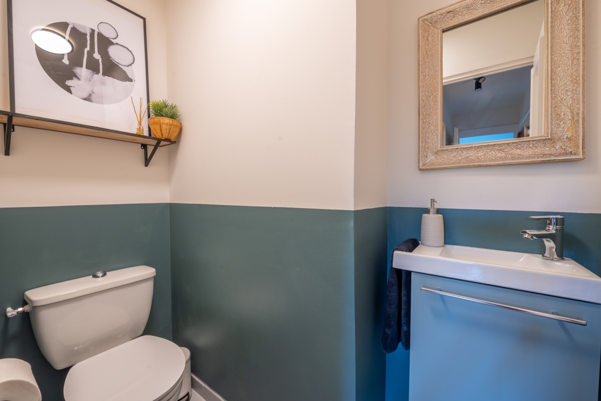 There are 2 large bathrooms newly fitted out with baths and fitted showers. Upstairs there is also a separate toilet.