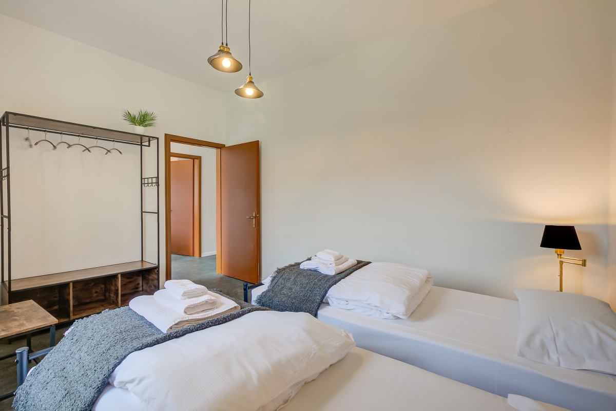 Bedroom 2: An ambient twin bedroom with 2 single beds.