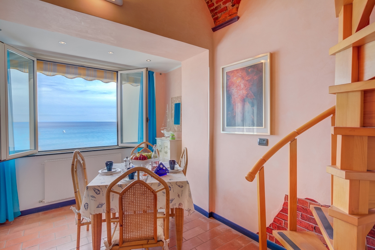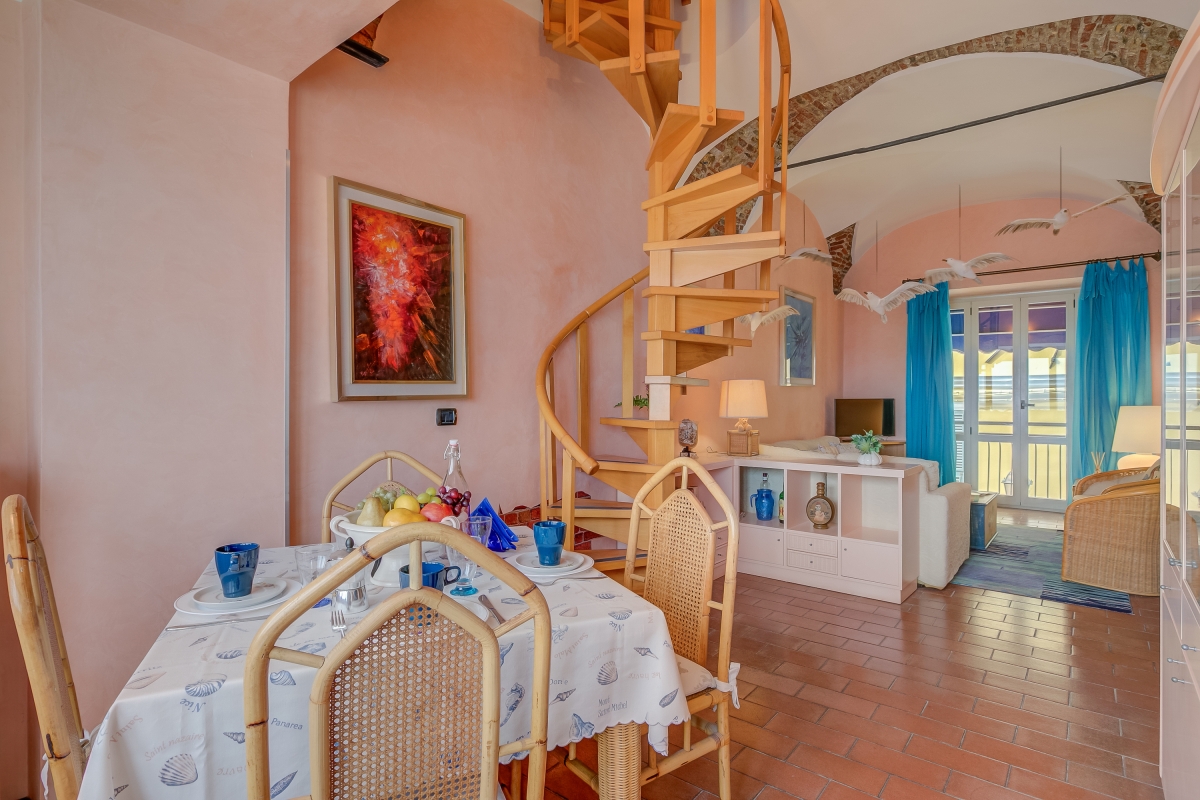 A unique 2nd-floor duplex, in the centre of Alassio, this apartment is right on the beach and has wonderful panoramic views out over the sea. The apartment sleeps 4 people and makes an idyllic holiday retreat, in the very heart of one the most popular resorts on the Ligurian coast.